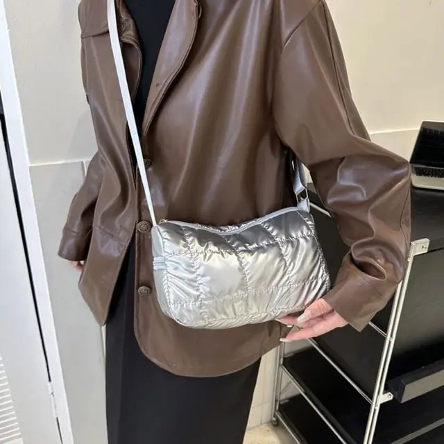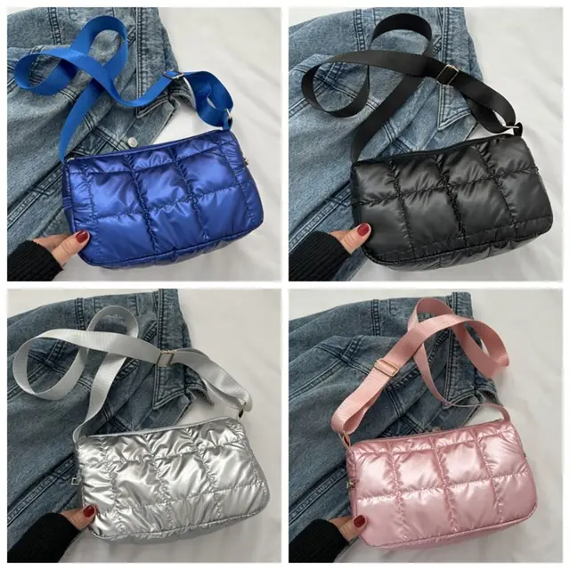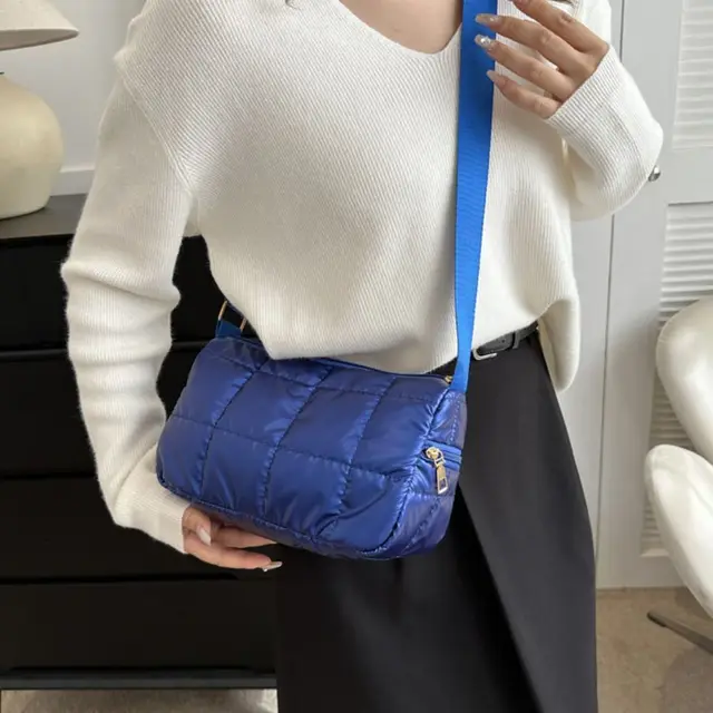 Lattice Space Cotton Crossbody Bag Korean Style Pleated Quilted Shoulder Bag Lightweight Oxford Padded Crossbody Bag Daily