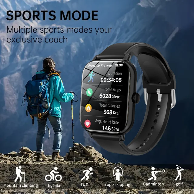 Bluetooth call, AI voice assistant, watch dialing, watch address book, music playback, stopwatch, timer, music control, remote photo, weather, screen brightness adjustment, APP Sports track, alarm reminder, call reminder, SMS reminder, sedentary reminder, heart rate monitoring, heart rate timer monitoring, blood pressure monitoring, blood pressure timer monitoring, blood oxygen monitoring, blood oxygen timer monitoring, sleep monitoring, breathing training, Spirit Island, cover hand resting screen, resting screen pointer, bedside lamp, step count, distance, calories, hand raising, wrist lifting, multiple exercise programs