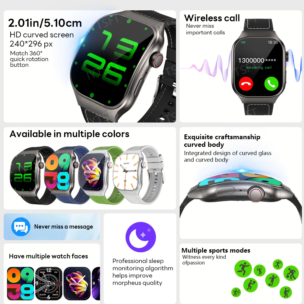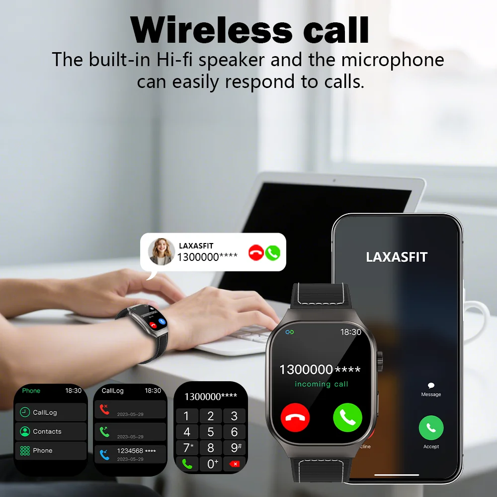 LAXASFIT New 2.01" HD Curved Screen Smart Watch Men Women Bluetooth Call AI Voice Sports Fitness Tracker Smart Watch