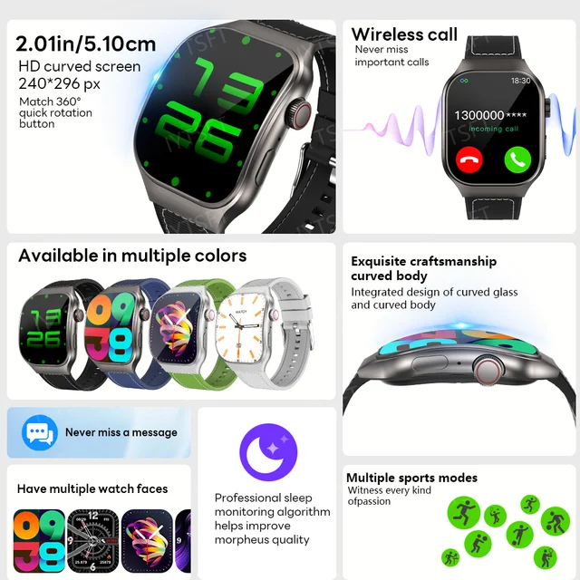 LAXASFIT New 2.01″ HD Curved Screen Smart Watch Men Women Bluetooth Call AI Voice Sports Fitness