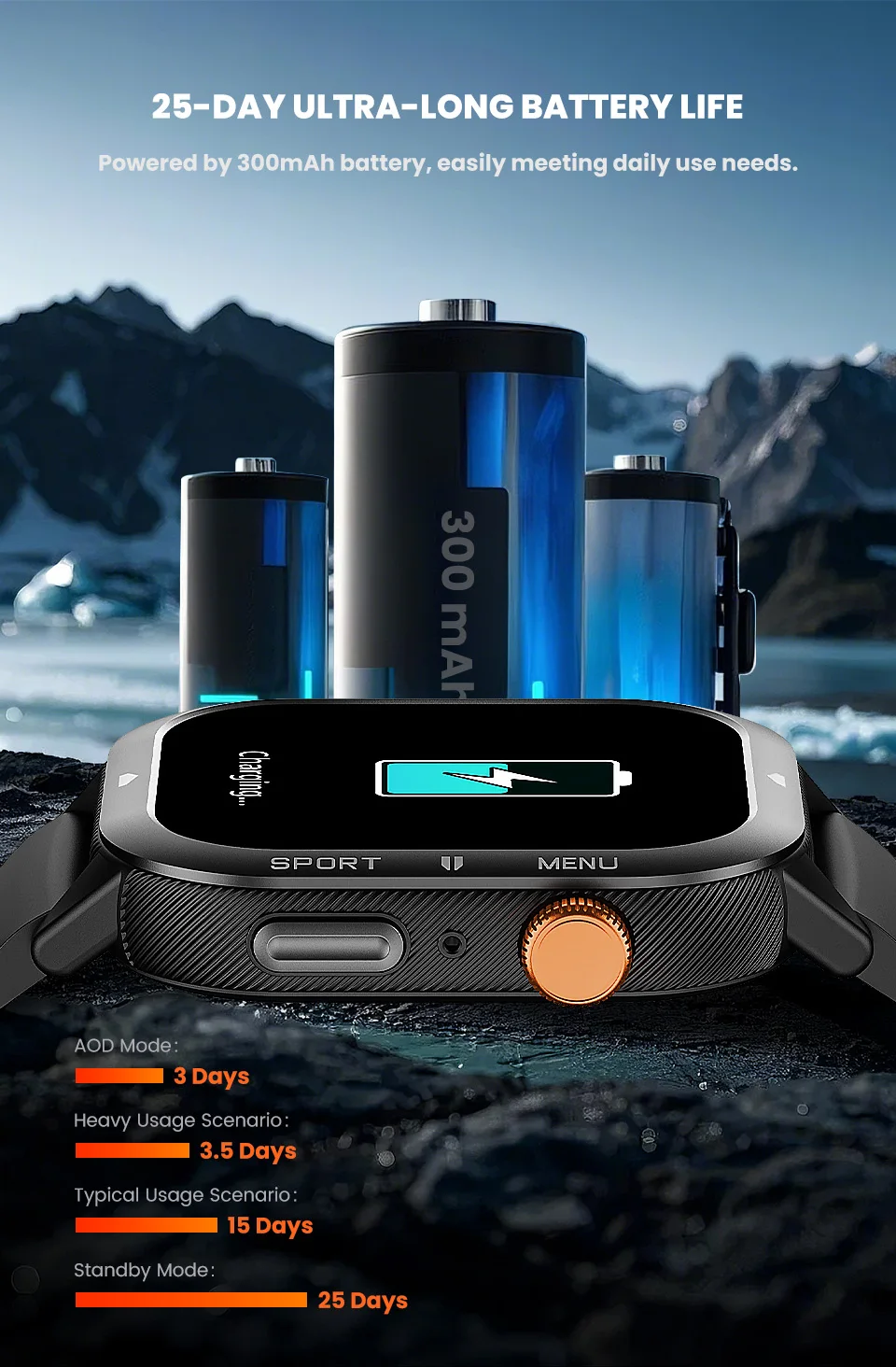 Enjoy extended use with a reliable 300-450mAh battery, keeping you powered through your longest workouts.