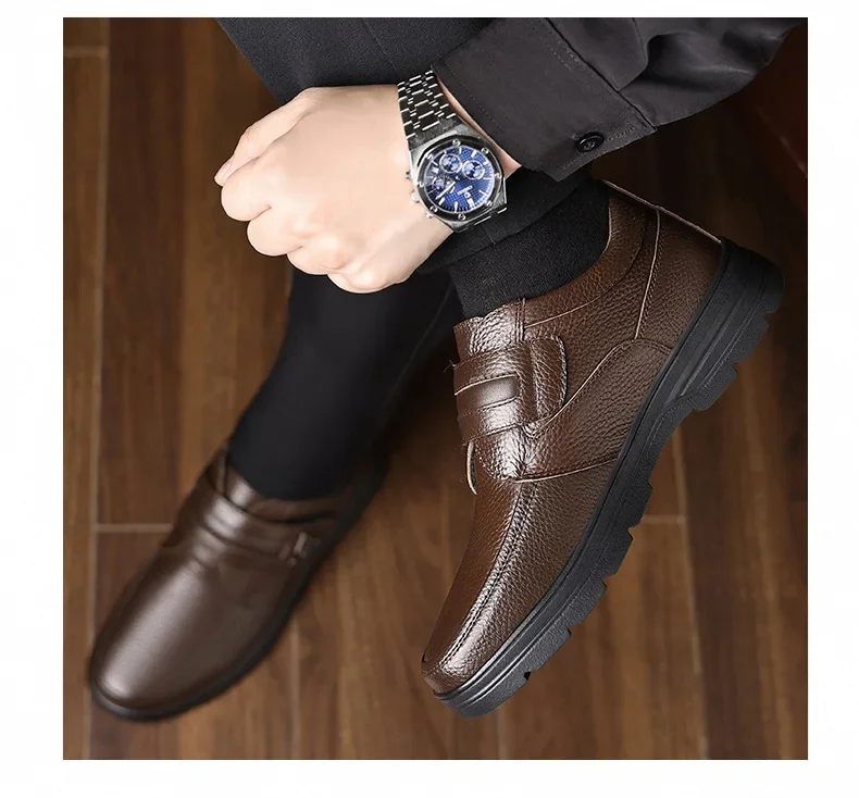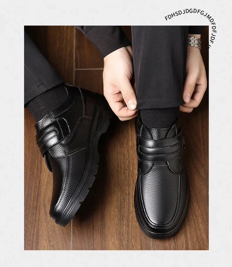 • Leather Upper : Crafted with premium cowhide leather, these shoes offer durability and a classic look for the middle-aged and elderly.