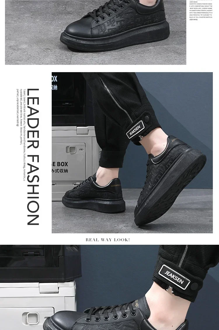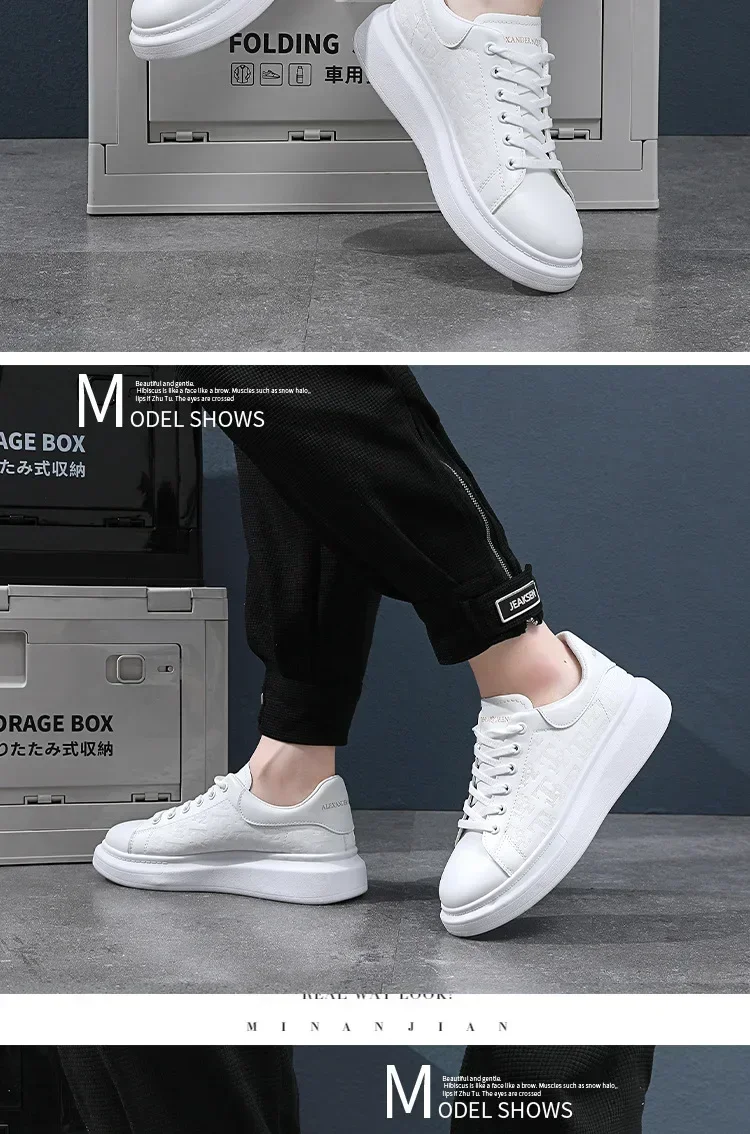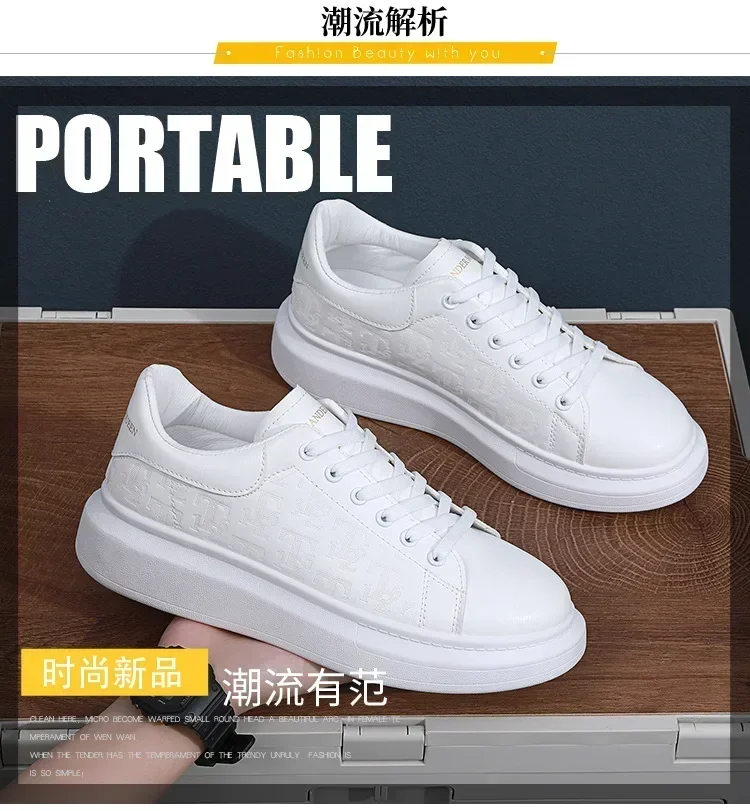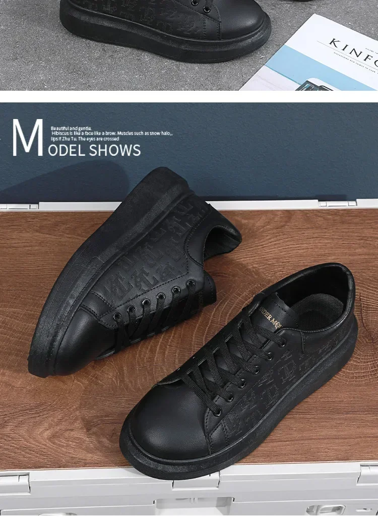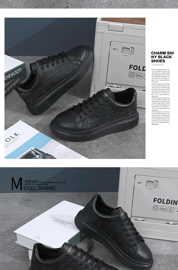 Leather Casual Shoes Men 2025 New Lace-up Thick Sole Casual Sneakers Versatile Leather Muffin Shoes Elevated Male Board Footwear
