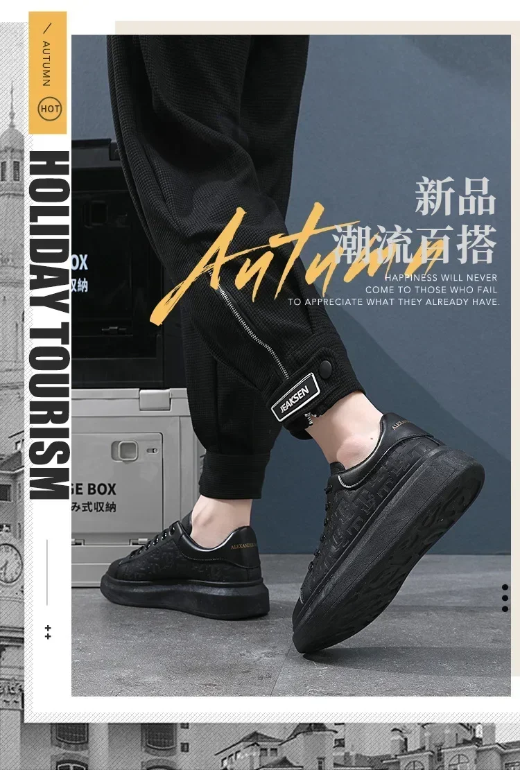 Leather Casual Shoes Men 2025 New Lace-up Thick Sole Casual Sneakers Versatile Leather Muffin Shoes Elevated