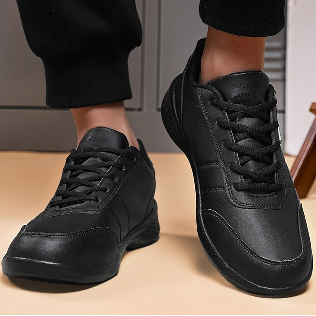 Men's Casual Black Sneakers Fashionable Lightweight Comfortable Non Slip Shoes Minimalist Design PU Leathe Skate Shoes for Men