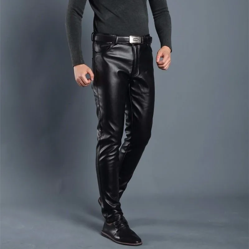 Men's Leather Pants Superior Quality Elastic Waist Jogger Pants PU Leather Motorcycle Trousers Biker's Pants