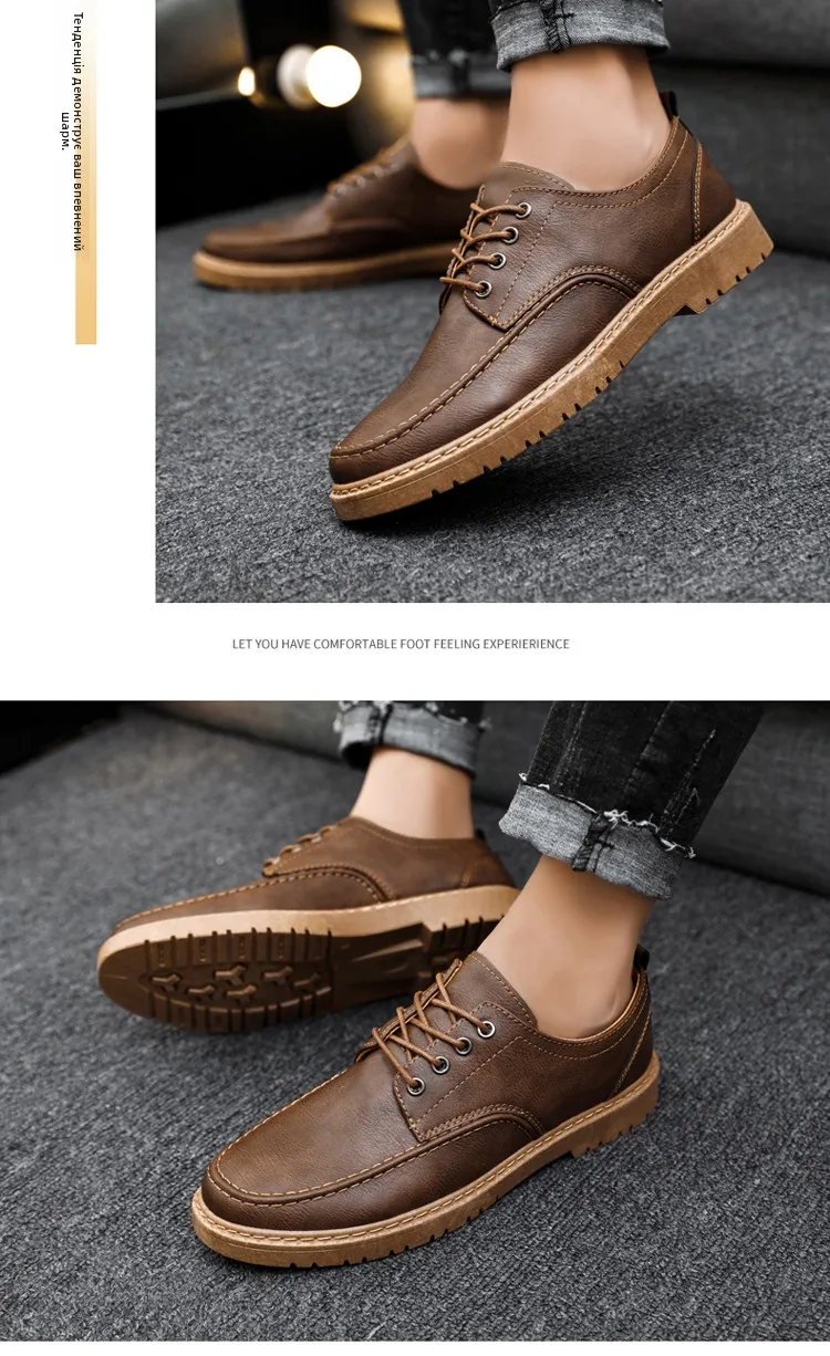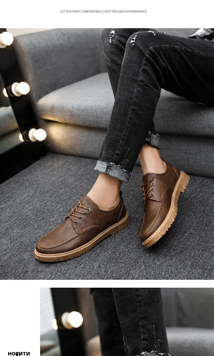 Leather Surface Men’s Casual oes Student Lazy Sle Summer Korean Version Breathable Men’s