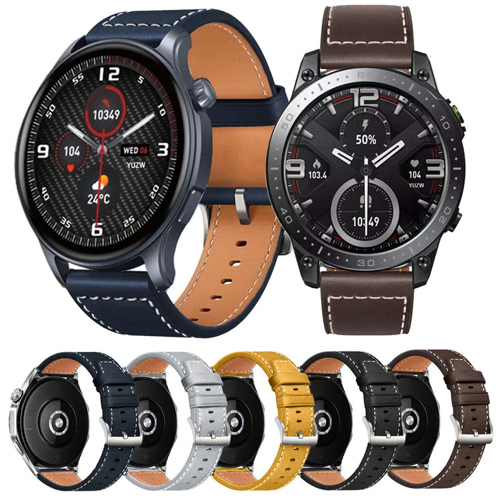 Leather Watch Strap For Zeblaze Vibe 7 Pro/Stratos 2/3 Ultra Beyond GTS3 GTR3 Btalk3 2 Pro Lite GPS Band 22mm Watchband Bracelet