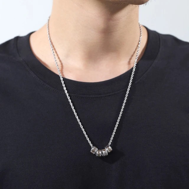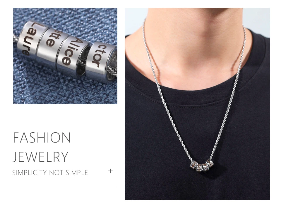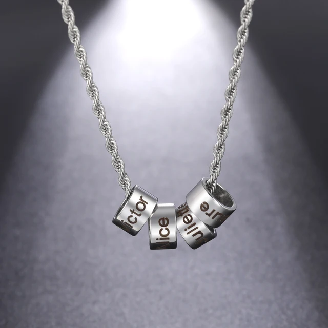 Lemegeton Engraved Name Beads Braided Necklace Customized 1-6 Names Pendant Men Personalized Leather