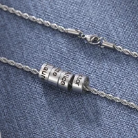 Lemegeton Engraved Name Beads Braided Necklace Customized 1-6 Names Pendant Men Personalized Leather Chain Jewelry Family Gifts