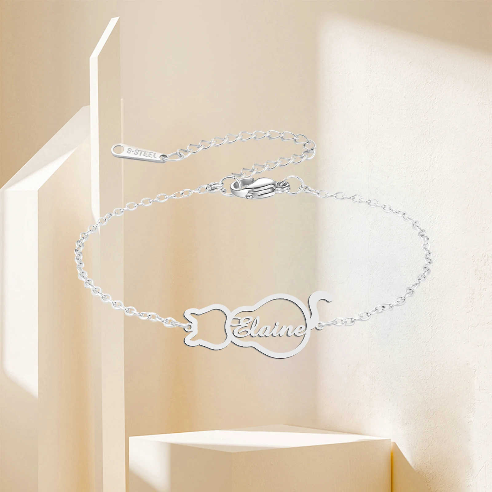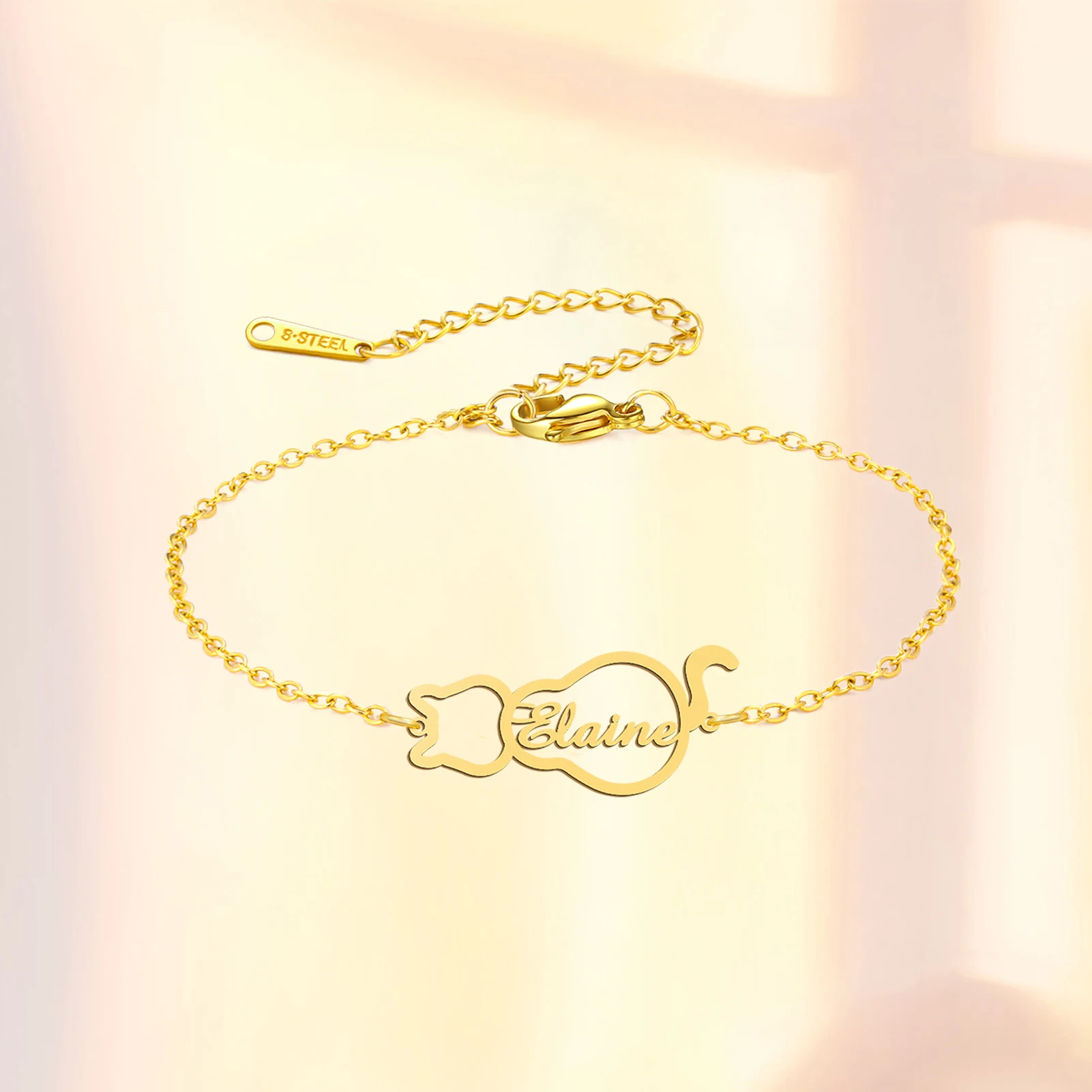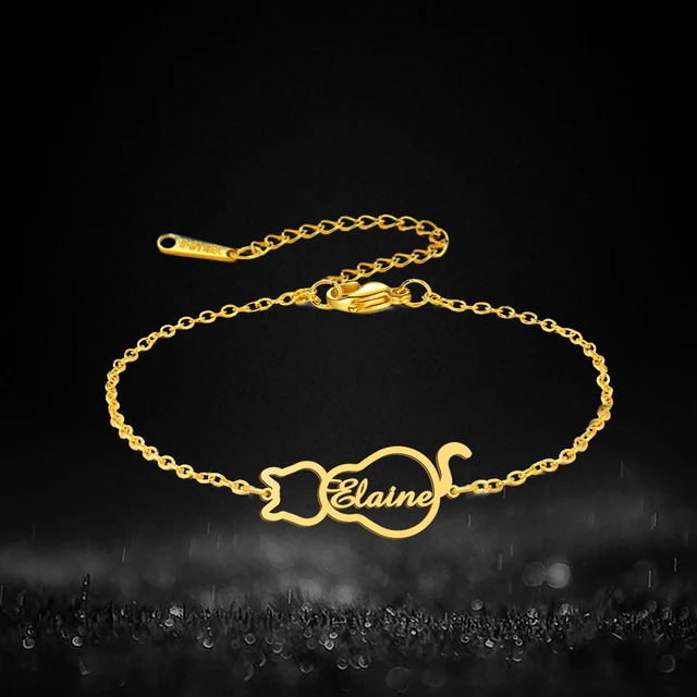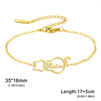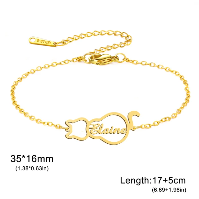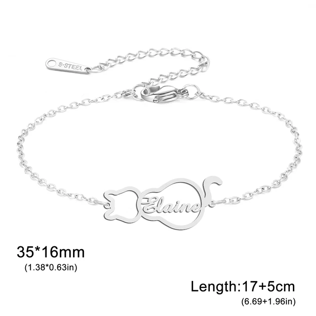 Lemegeton Personalized Name Bracelets Custom Cat Pendant for Women Child Stainless Steel Jewelry Bracelet