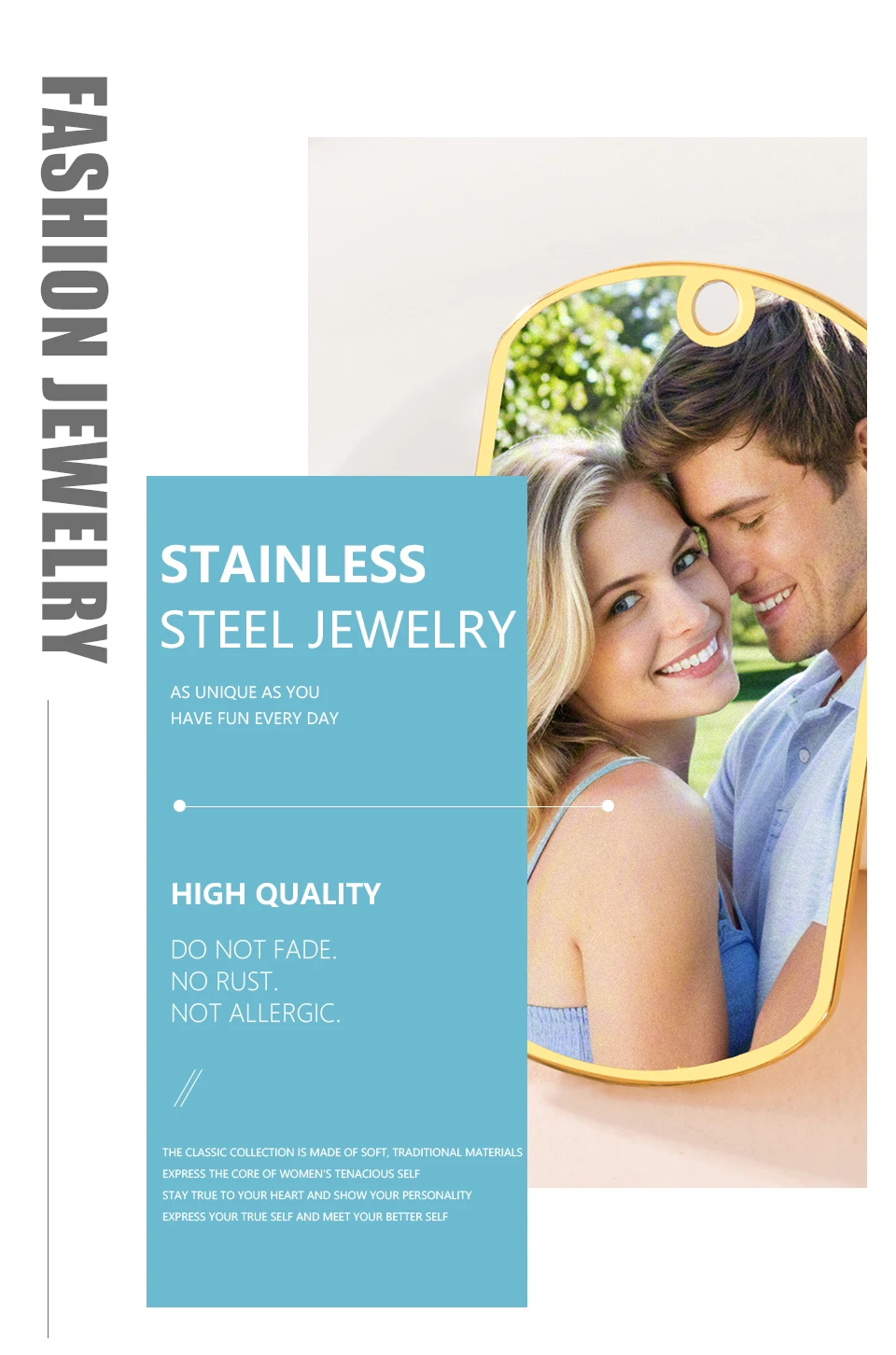 Why choose stainless steel: 1. No rust; 2. Not Allergic; 3. Powerful of anti-acid,anti-alkali; 4. No deformation; 5. Do not fade.