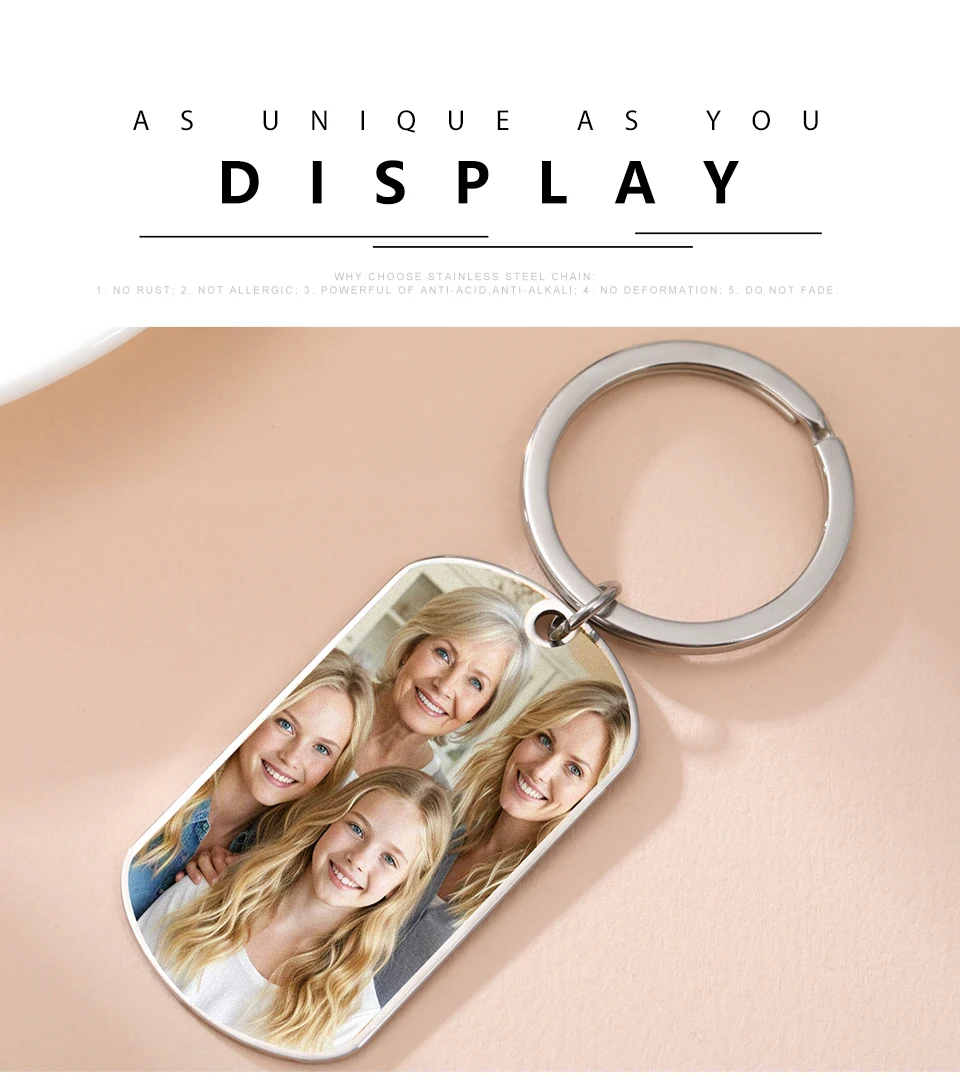 Lemegeton Personalized Photo Keychain Single Side Print Picture Key Chain Stainless Steel Jewelry Customized