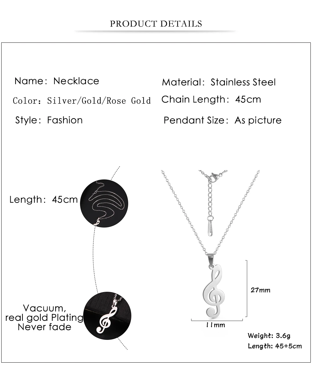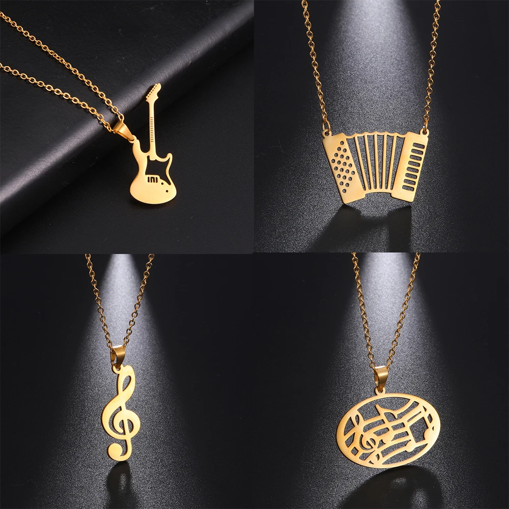 Lemegeton Stainless Steel Music Necklace Saxophone Guitar Microphone Symbol G Clef Pendant Necklaces