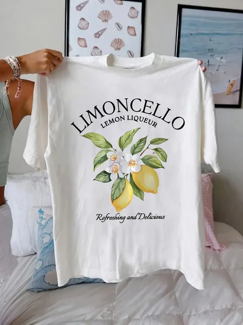 Fruit Print Crew Neck Short Sleeve T-Shirt Women Retro Graphic Tee Unisex Fashion Top Oversized Harajuku Y2k Streetwear T-Shirts