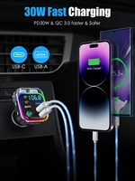 This wireless bluetooth car adapters are equipped with PD 20W & QC3.0 Fast Charger, Its 30W USB C port can charge your iPhone to 85% in 30 mins. It comes with smart charge monitoring to prevent overload, overcharge, short circuit and other accidental situations