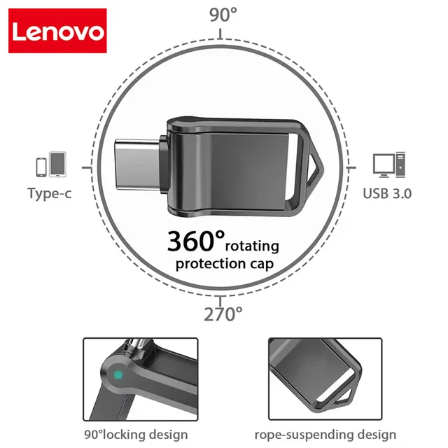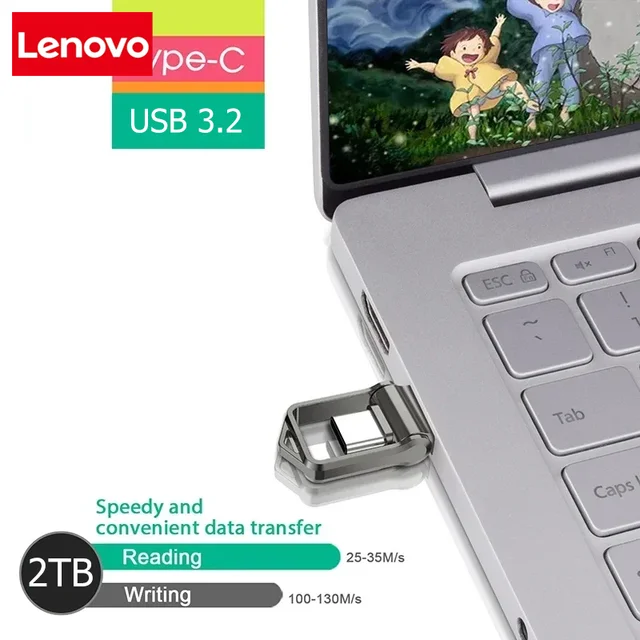 Lenovo 2TB Metal USB Flash Drives USB 3.2 High-Speed Mobile Phone Computer Mutual Transmission Portable Type-C Interface U-Disk
