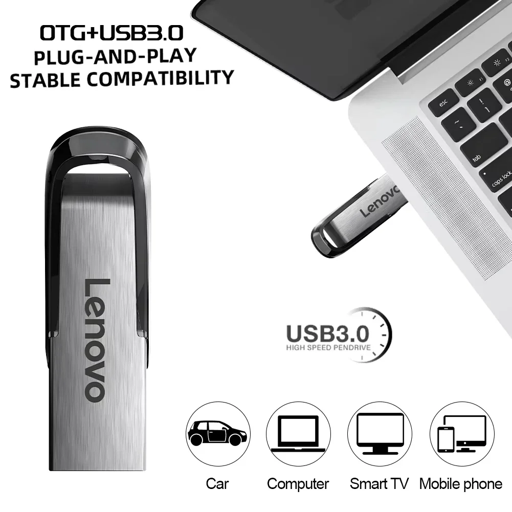Lenovo Flash Drives 2TB USB 3.0 Mini High Speed Metal Pendrive 1TB Stick Drive Waterproof Scratch-Resistant Durable USB Drive