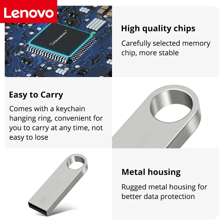 Lenovo 2TB USB 3.0 Pendrive Flash Drive Metal Mobile Mini Pen Drive  Memory Stick Waterproof Storage PC Phone Data Transfer