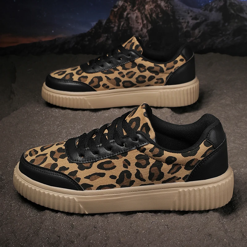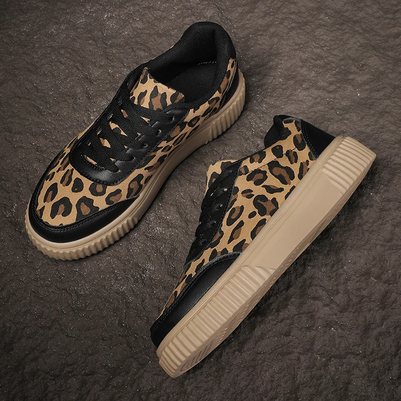 Leopard Print Platform Women’s Sneakers Lace-Up Thick Bottom Vulcanize Shoes Woman Canvas Breathable