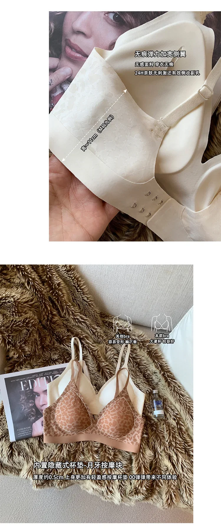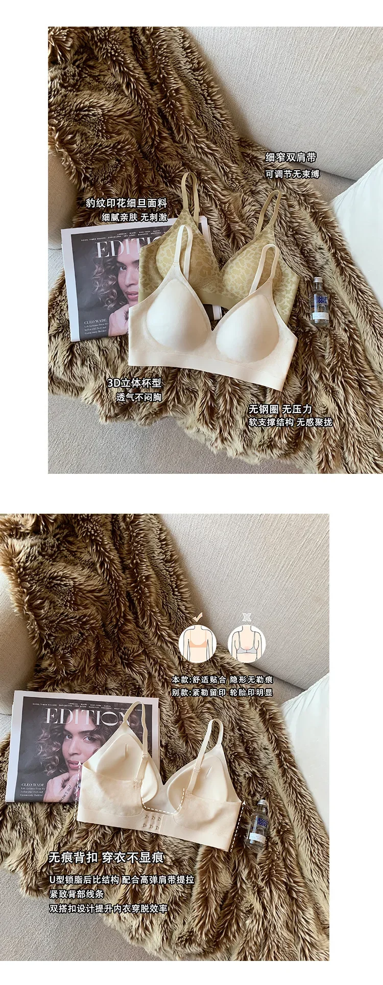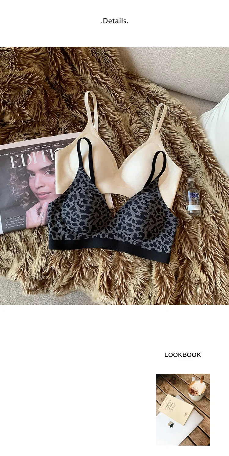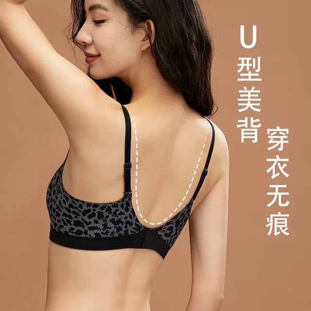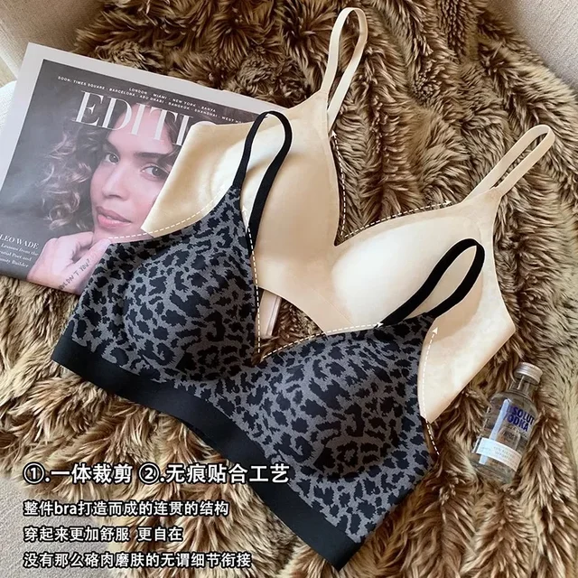 Leopard-print Seamless Underwear Women's Thin, Small, Push-up Bra with No Underwire Compression and Anti-sag Bra
