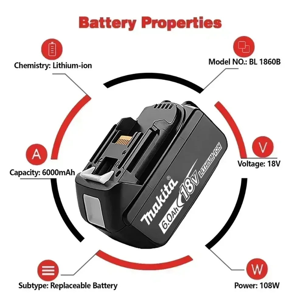 Li-ion Battery Original Makita 18V 6Ah/5Ah BL1860B BL1850B BL1850 BL1840 BL1860 BL1815 Replacement Lithium Battery