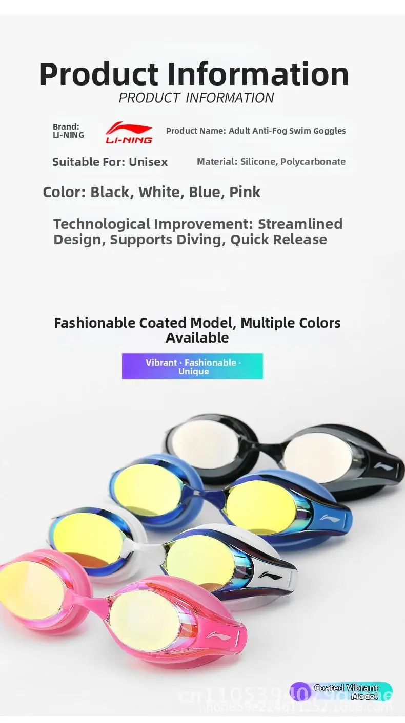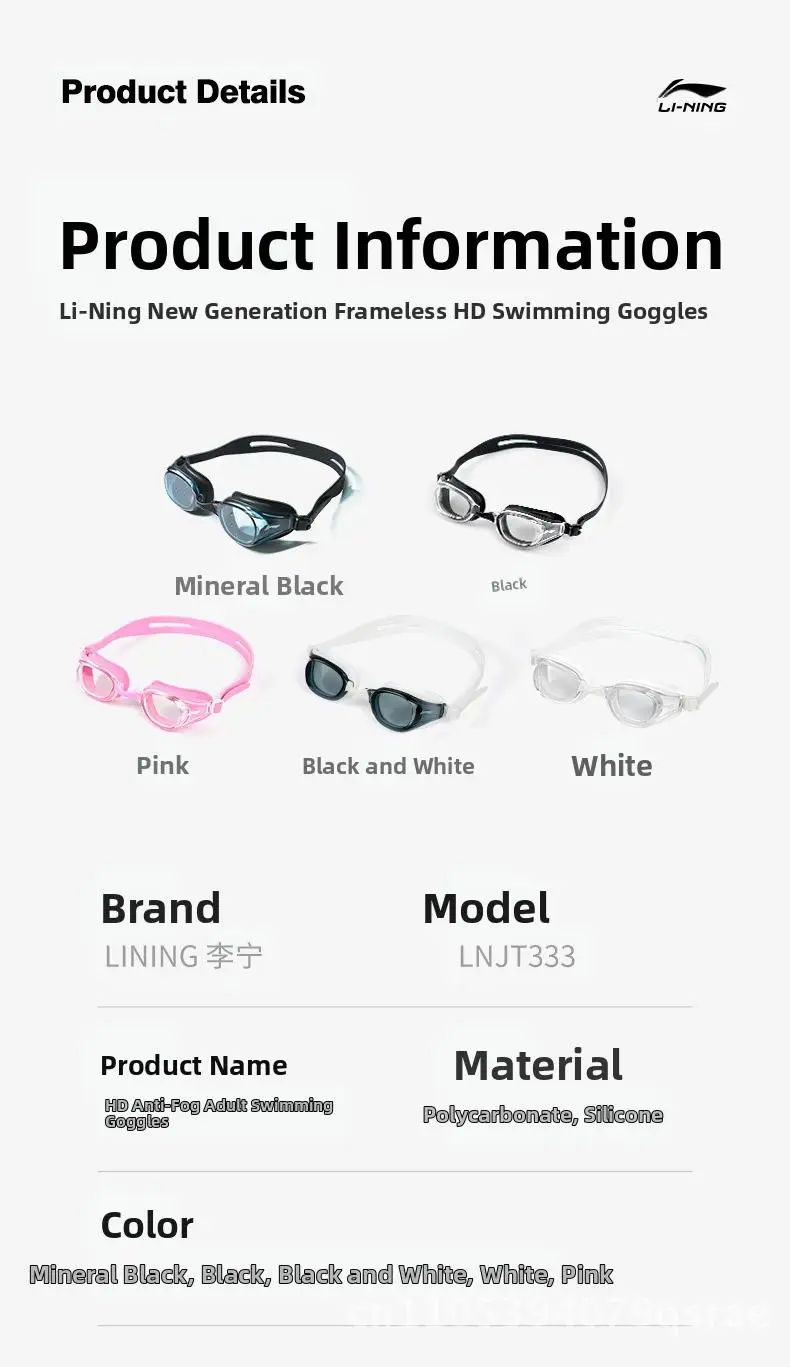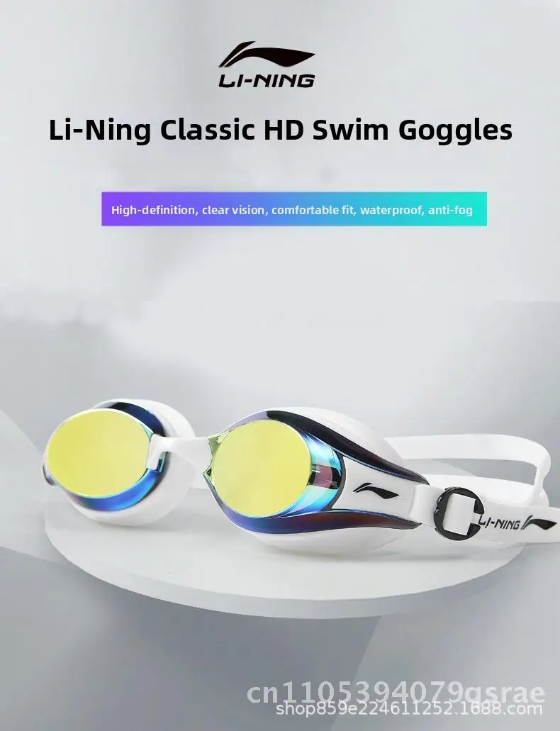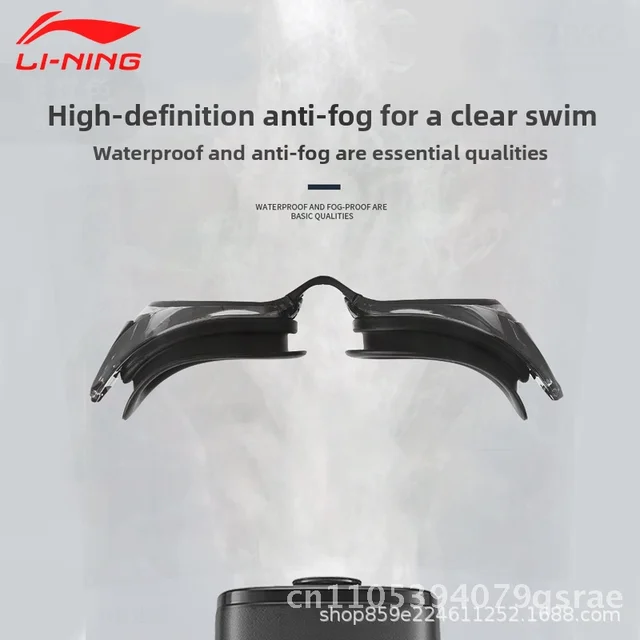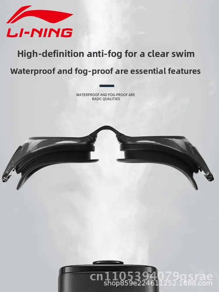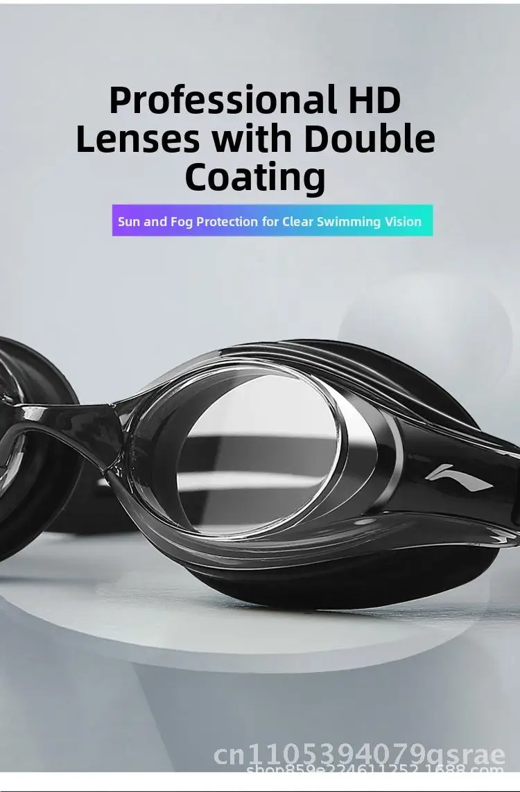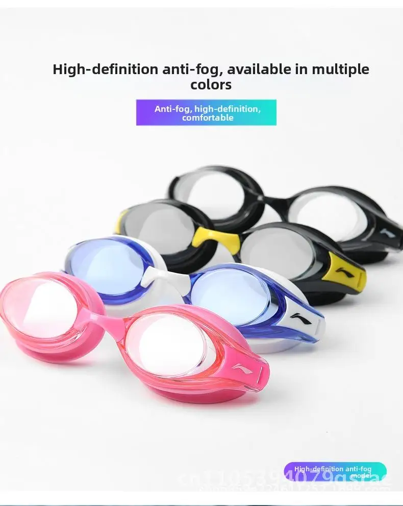 Li Ning Anti-Fog Swimming Goggles HD Waterproof Professional Swimming Equipment for Men And Women Black Blue Pink White Plain