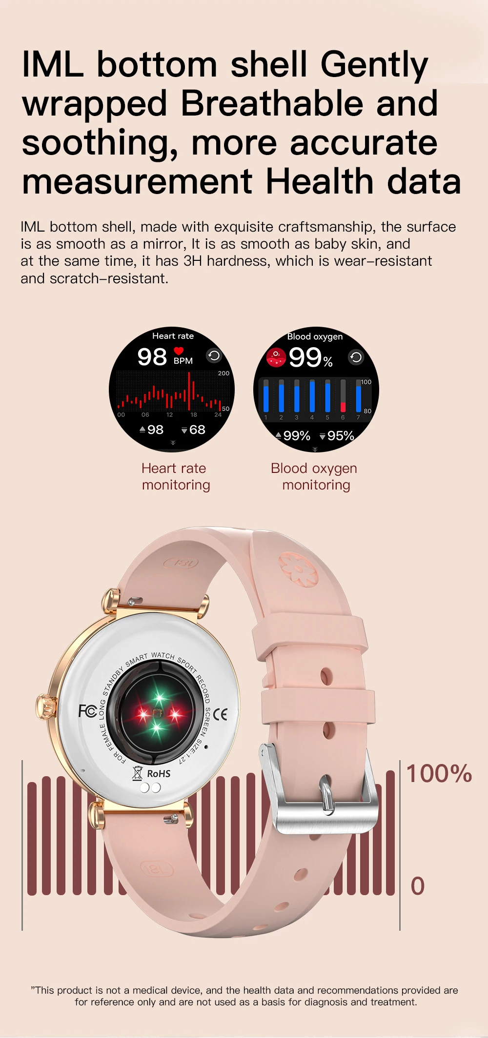 Waterproof: IP67 (Only resistant to daily water splashes like hand washing or rain. Do not wear while swimming, diving, or bathing.)