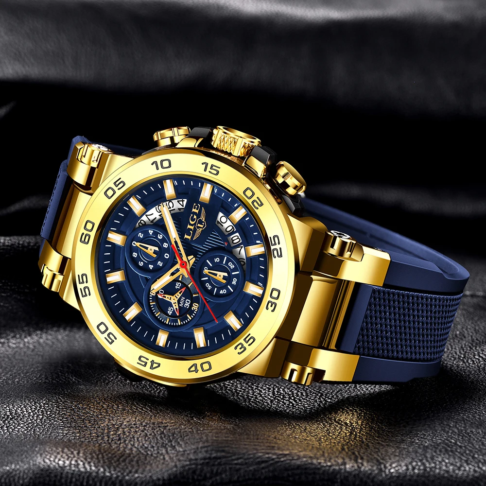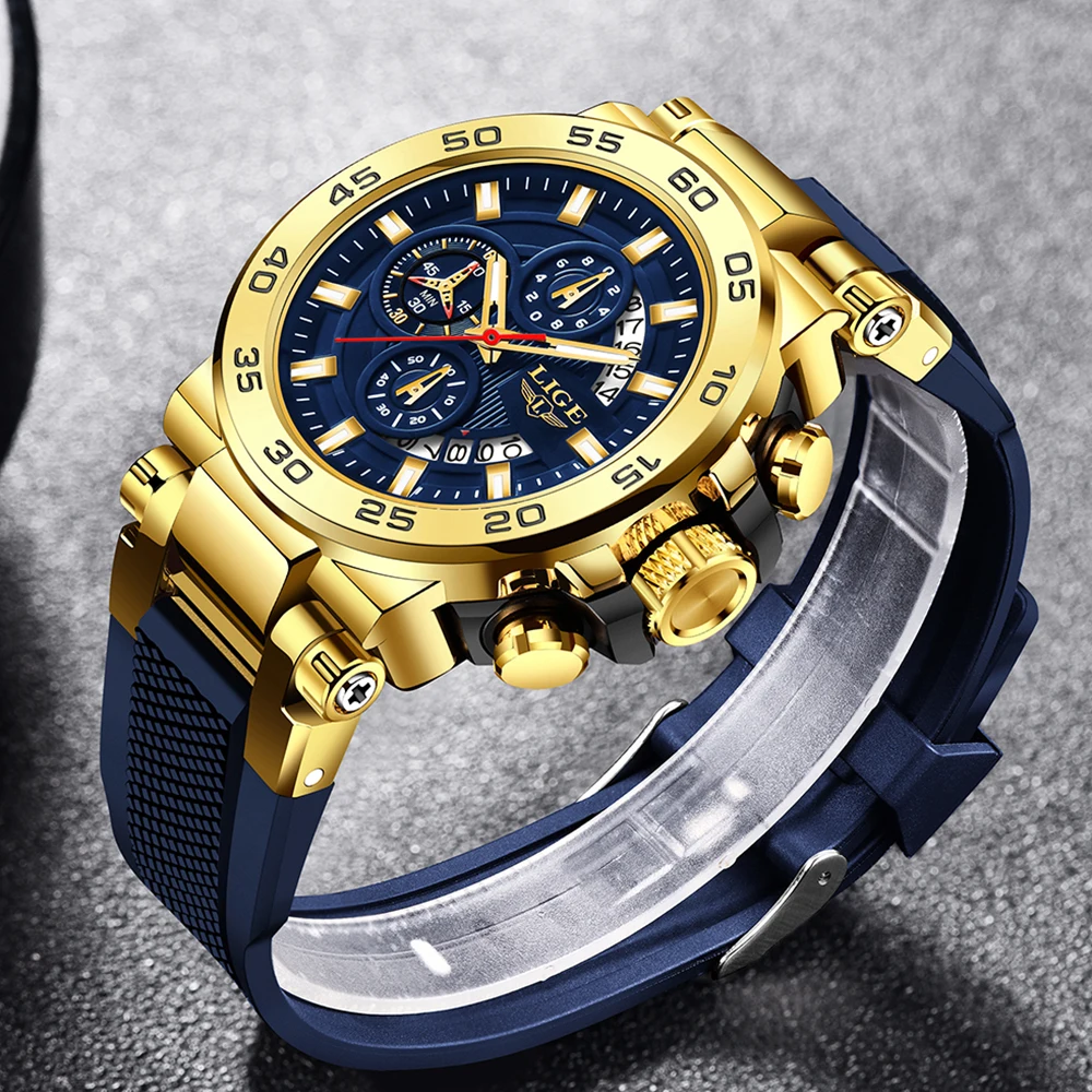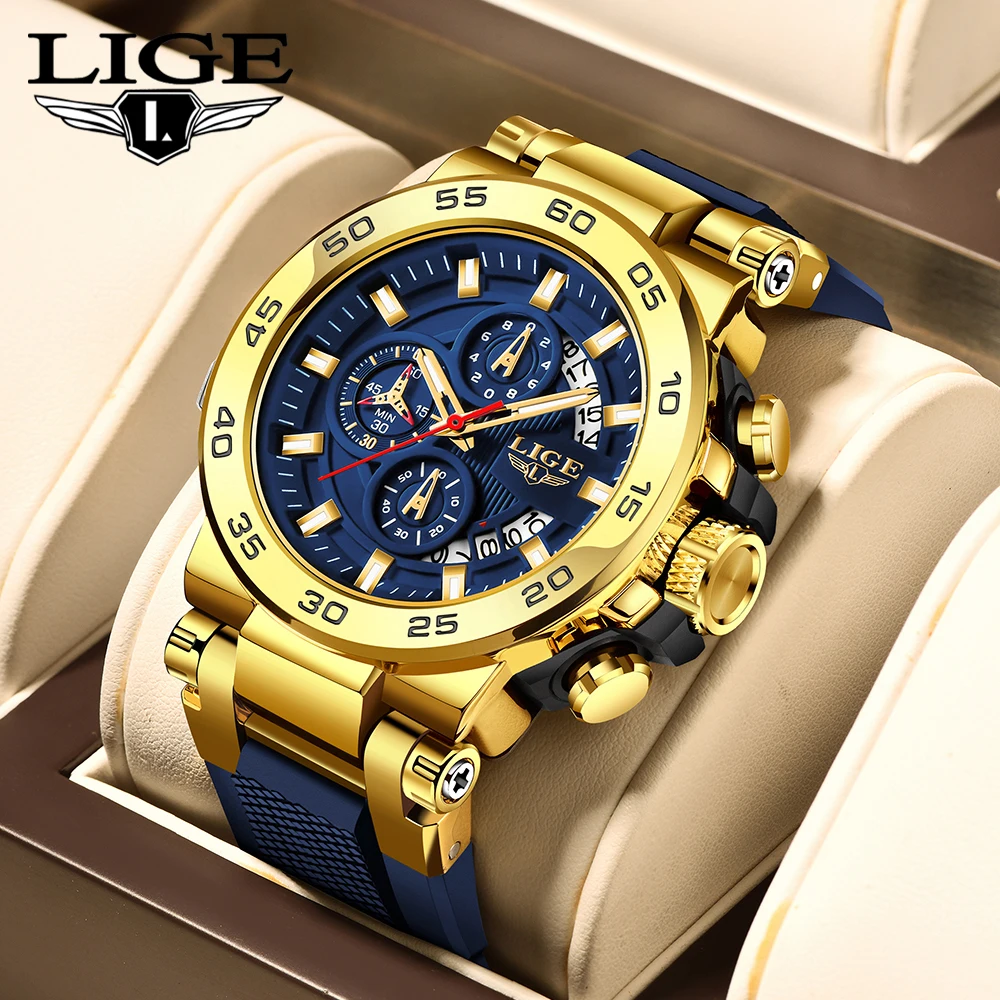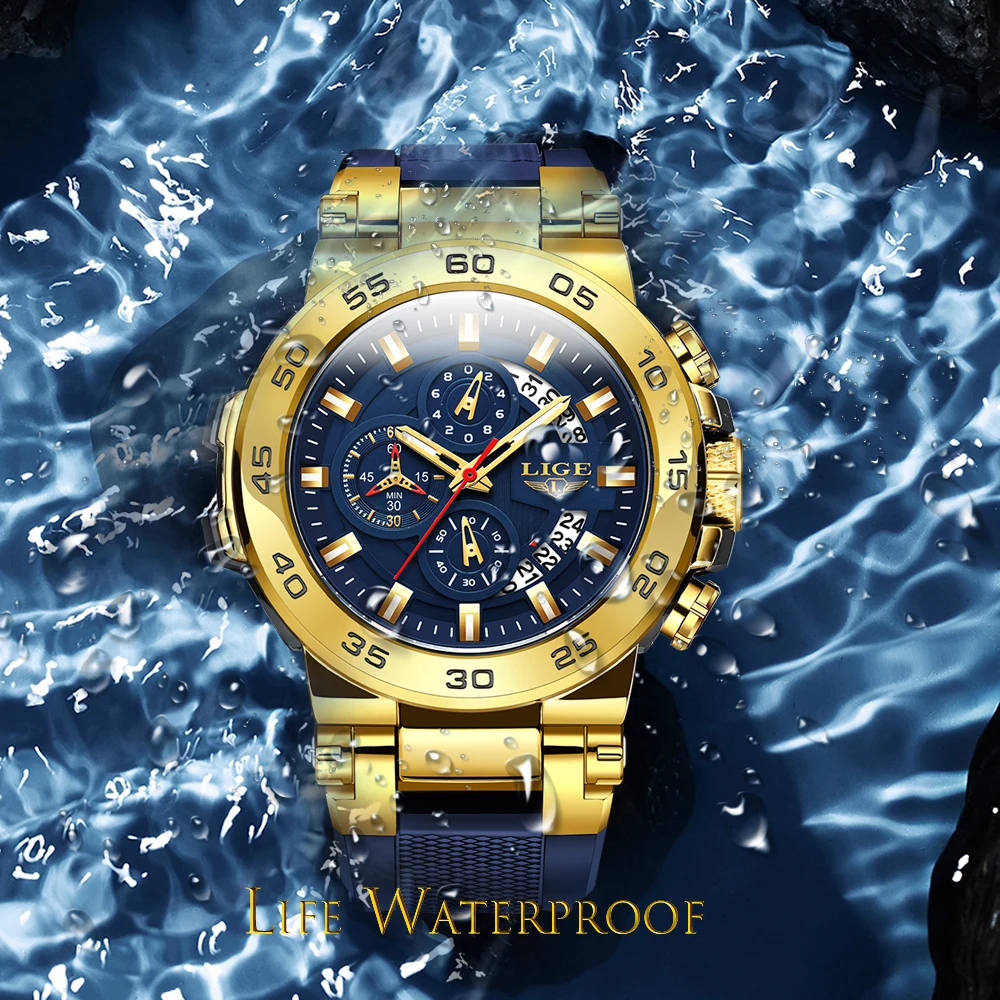 LIGE New Mens Watches Top Luxury Brand Big Dial Watch Men Waterproof Quartz Wristwatch Sport Chronograph