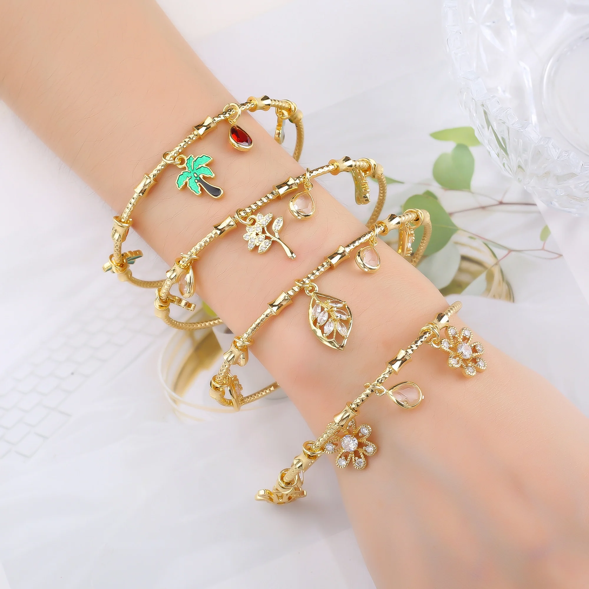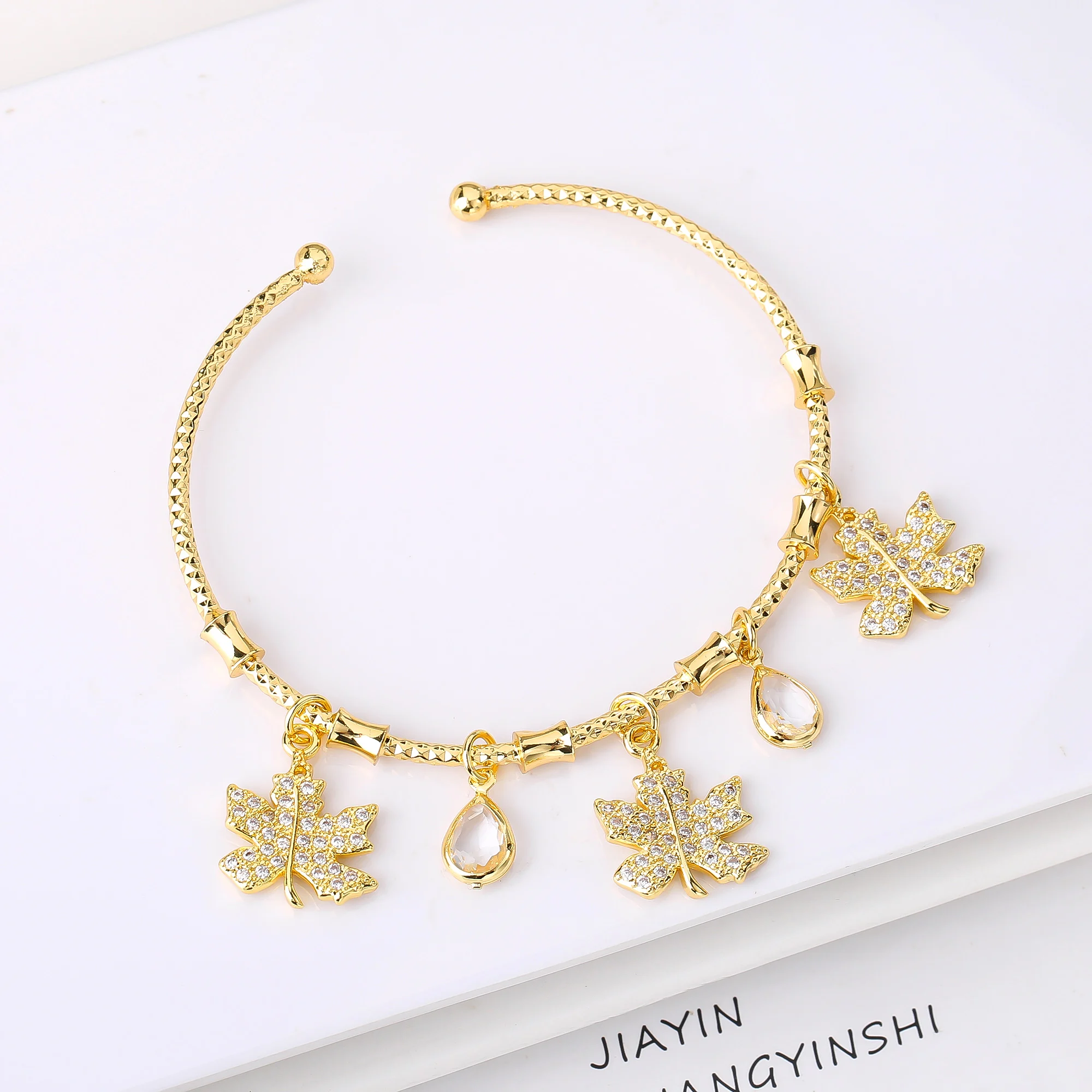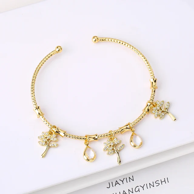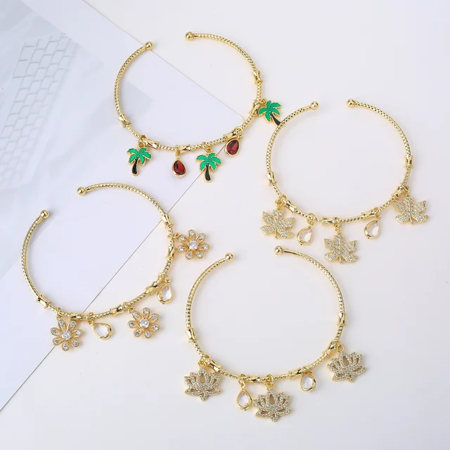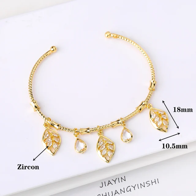 Name:Light Luxury Gold-Plated Zircon Leaf Tree Pendant Bangle Elegant For Women Daily Party Adjustable Jewelry Girl Birthday Gift