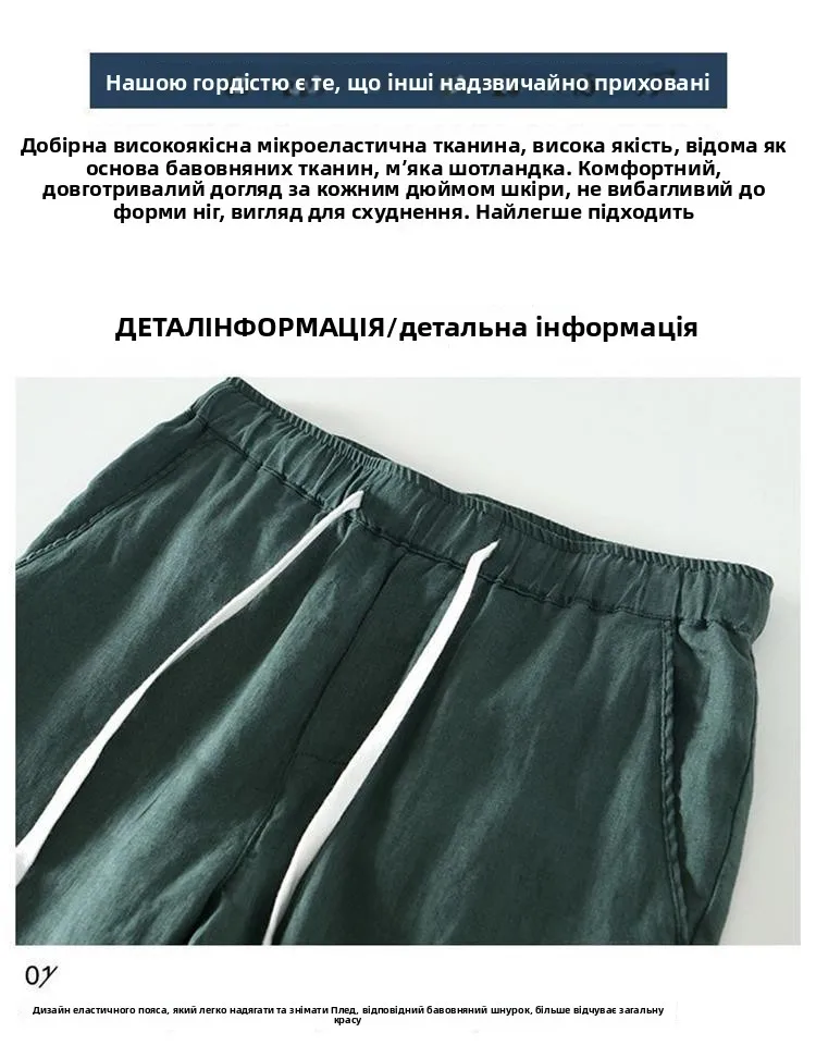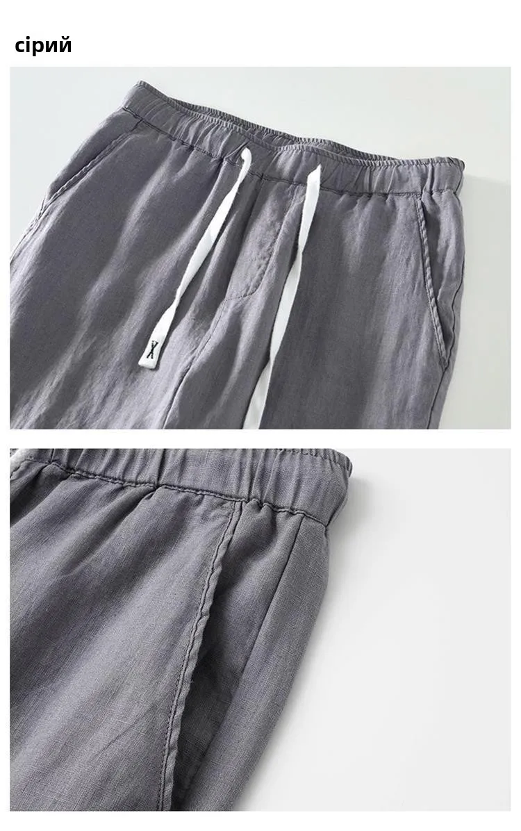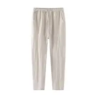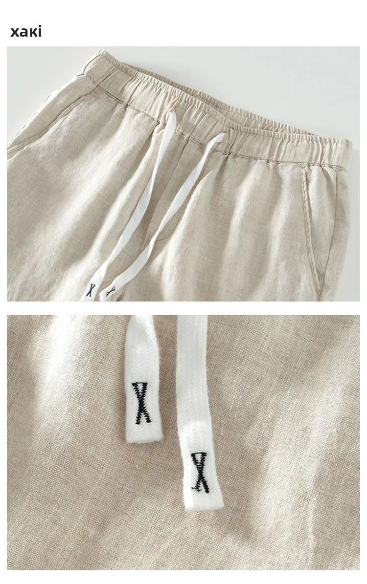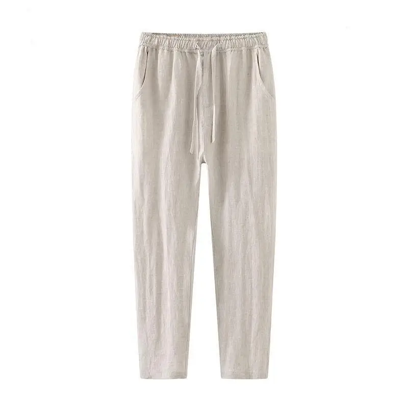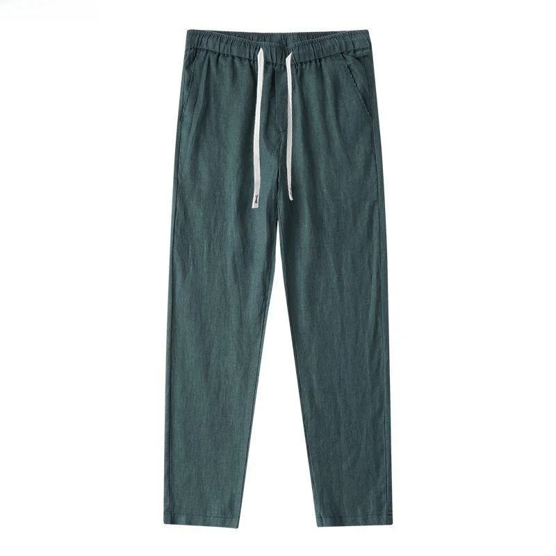 Lightweight Breathable Pure Cotton Linen Men's Pants Sweat Absorbent Straight Leg Long Trousers for Daily Wear Summer Season