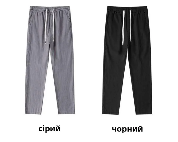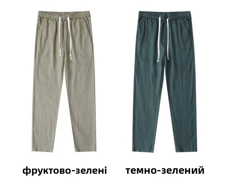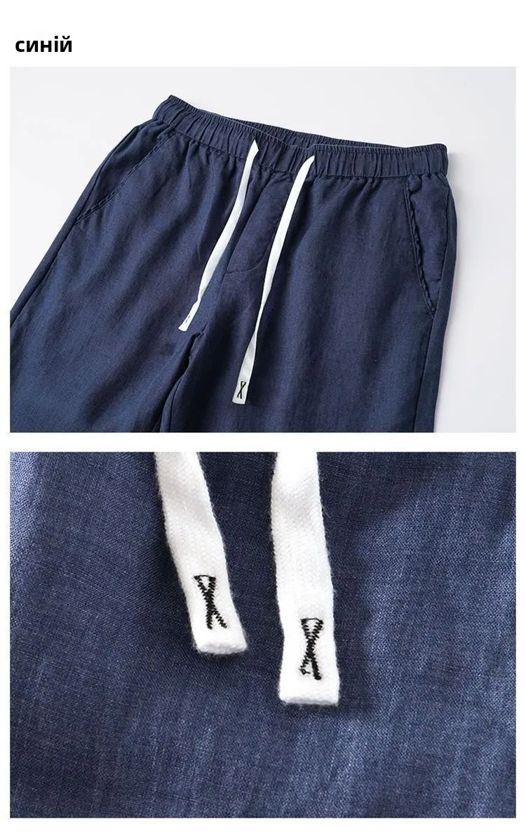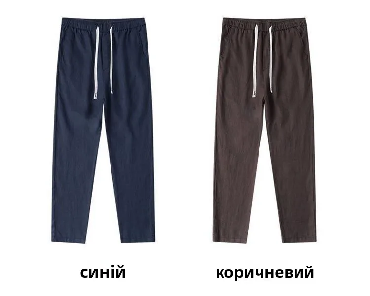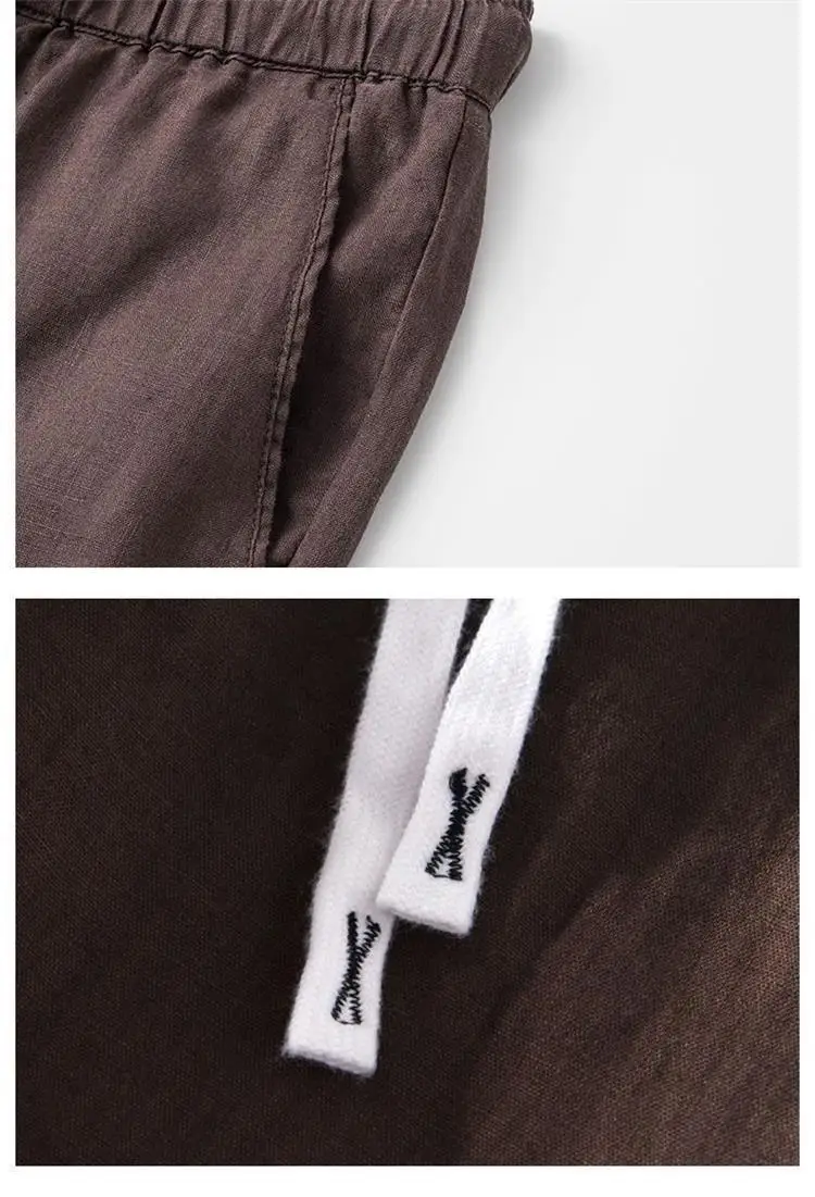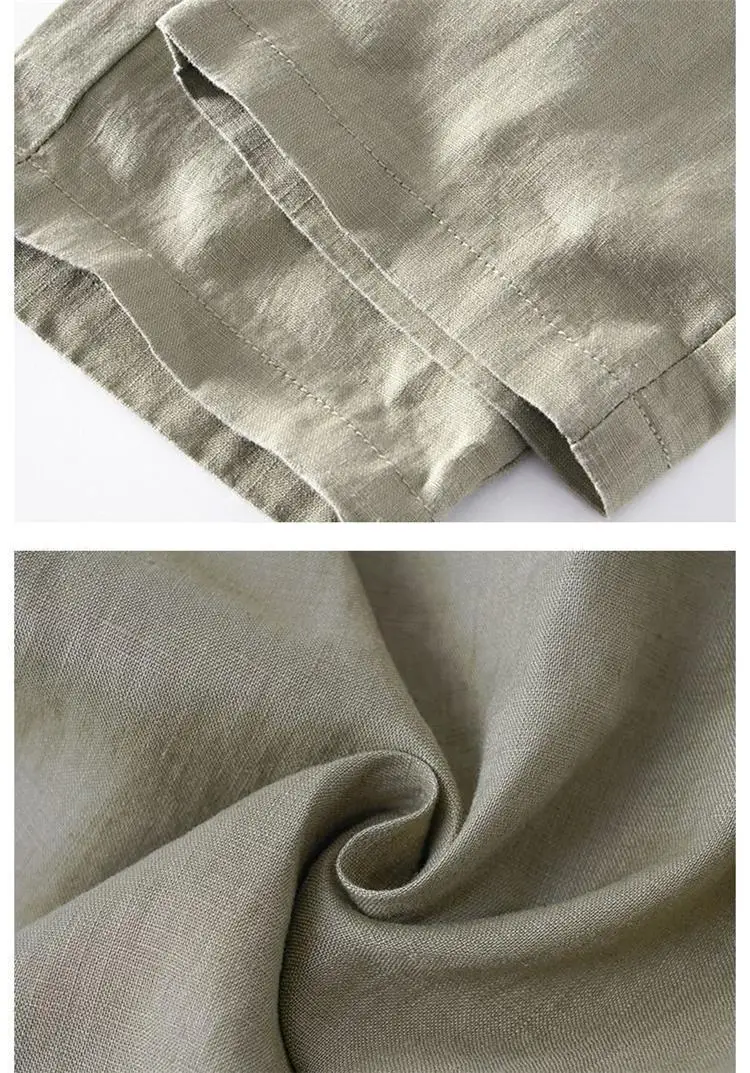 Lightweight Breathable Pure Cotton Linen Men’s Pants Sweat Absorbent Straight Leg Long Trousers