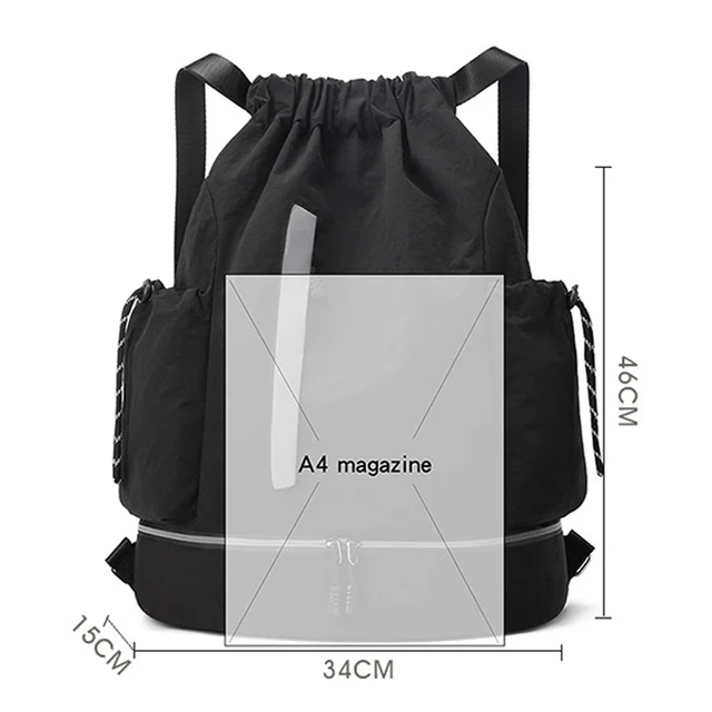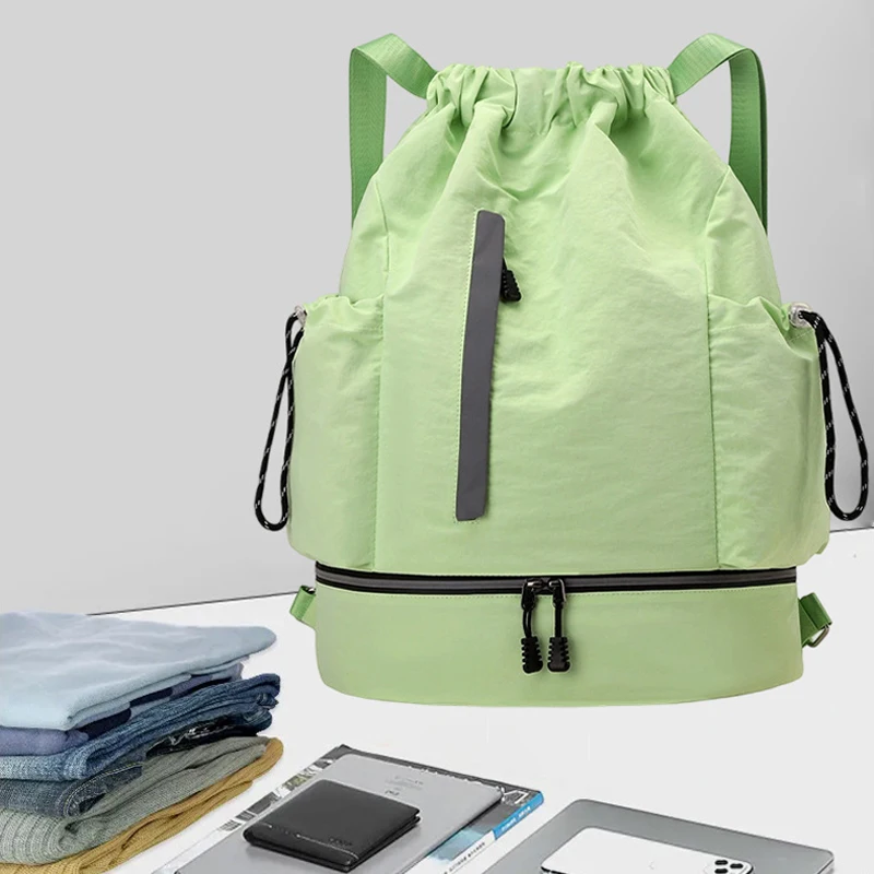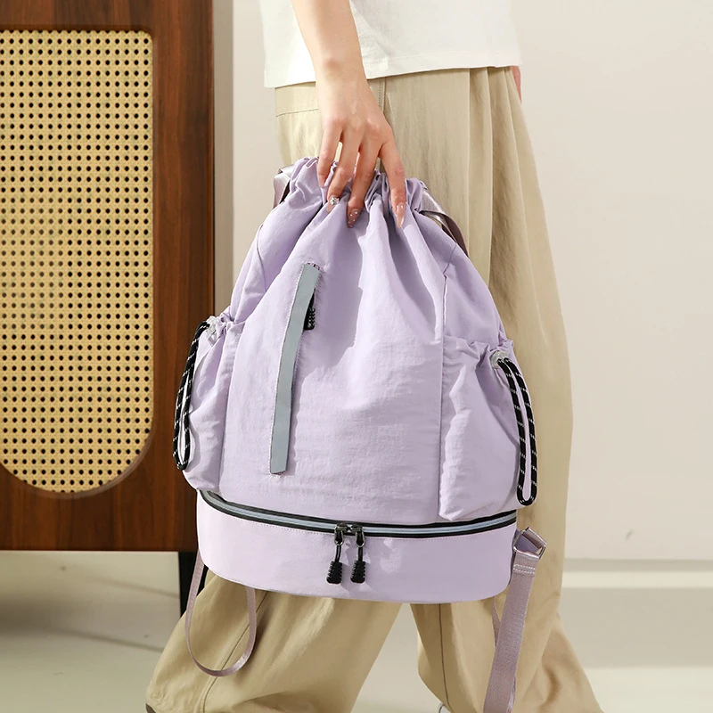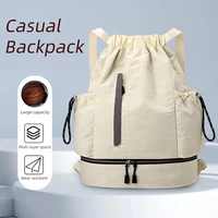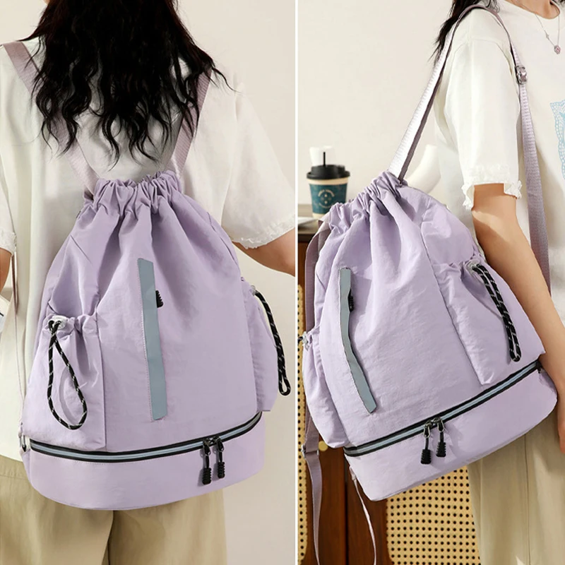 Lightweight Fashionable Drawstring Backpack with Shoe Compartment Adjustable Straps Sports Bag for Women Dry and Wet Separation