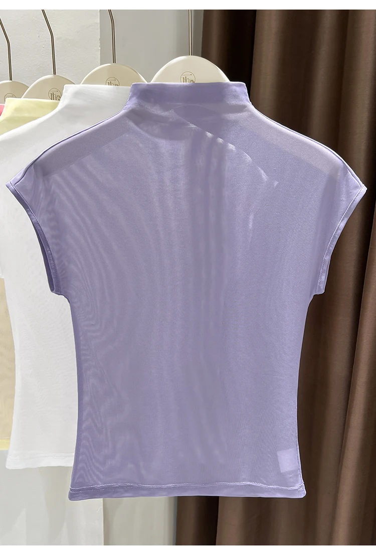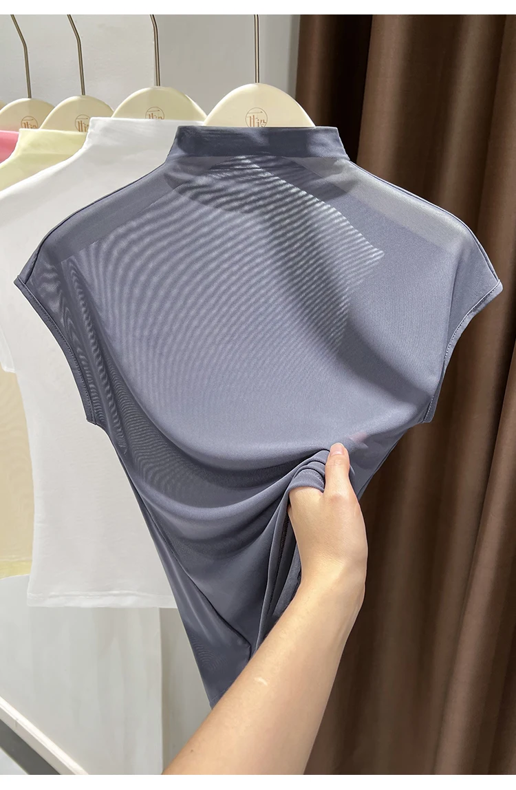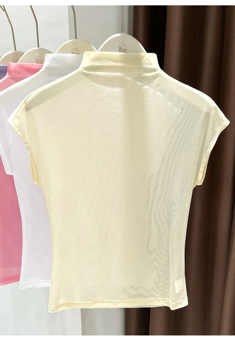 Crafted from a blend of 95.1% nylon and 4.9% spandex, this T-shirt offers a smooth, breathable feel for summer comfort.