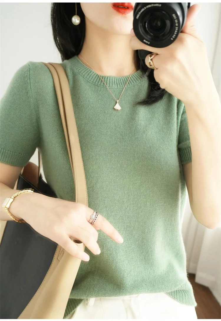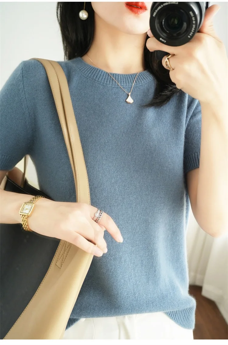 Crafted for the summer, this thin wool knit T-shirt offers a lightweight feel, perfect for warm days.