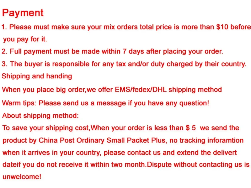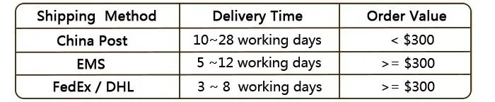 Estimated delivery time : 5 – 15 working days