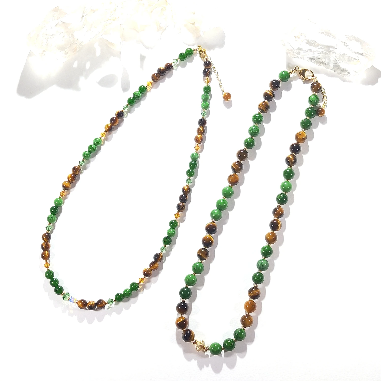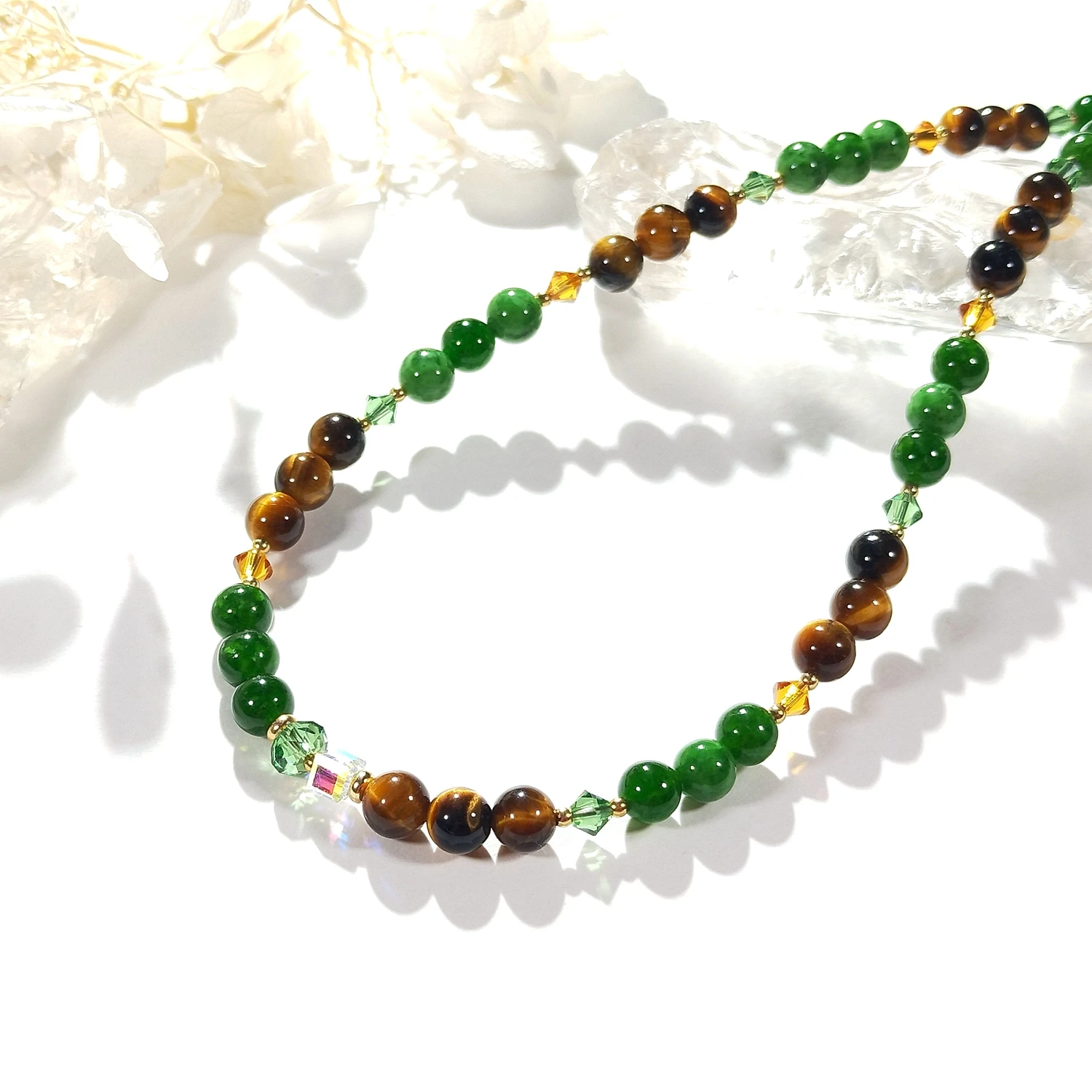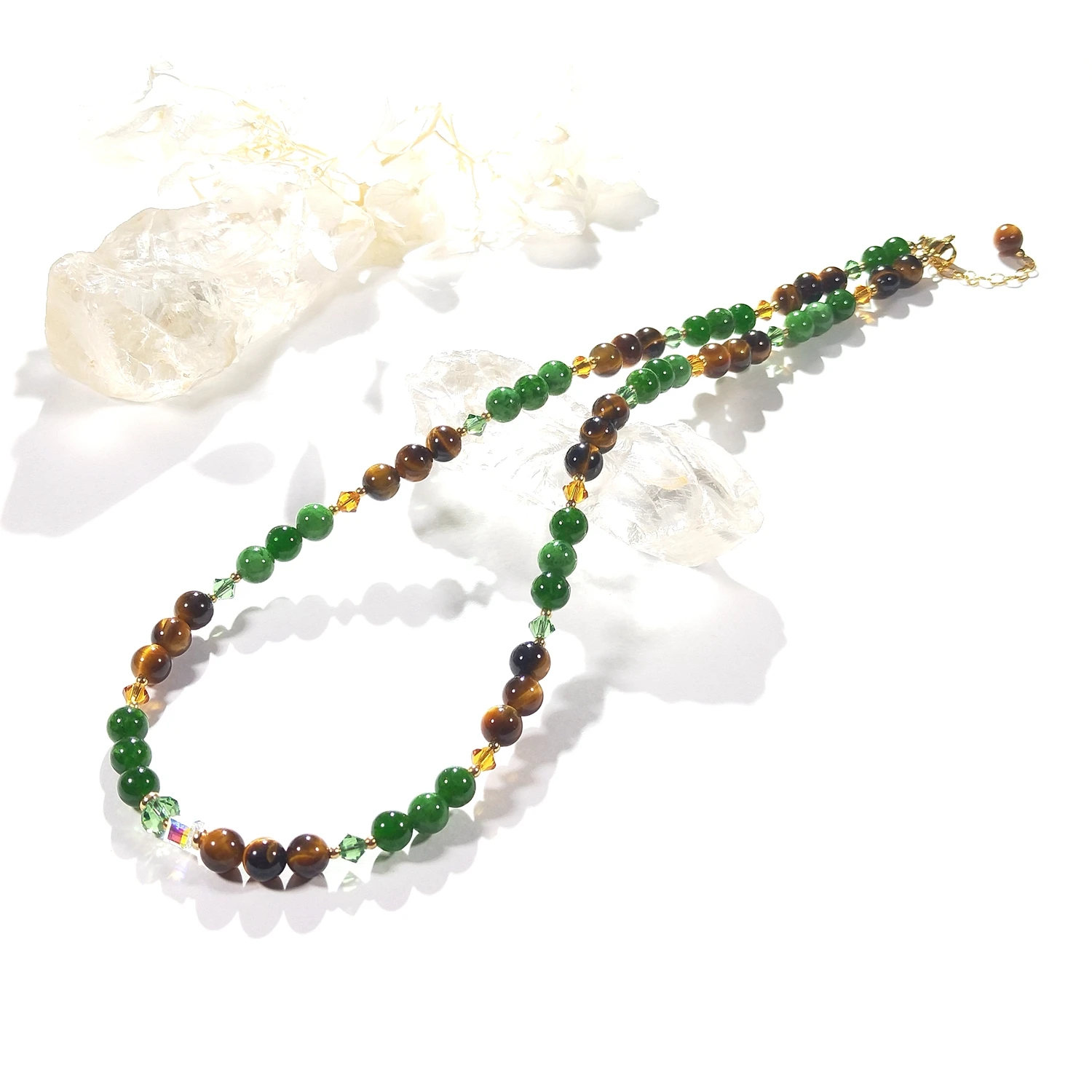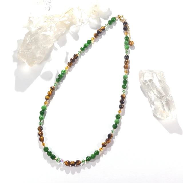 Lii Ji Tiger's Eye Labradorite Obsidian Natural Stone 4mm 14K Gold Filled Necklace For Women Girls Gift 45+3cm