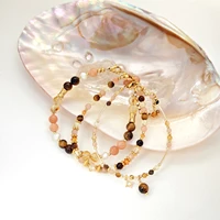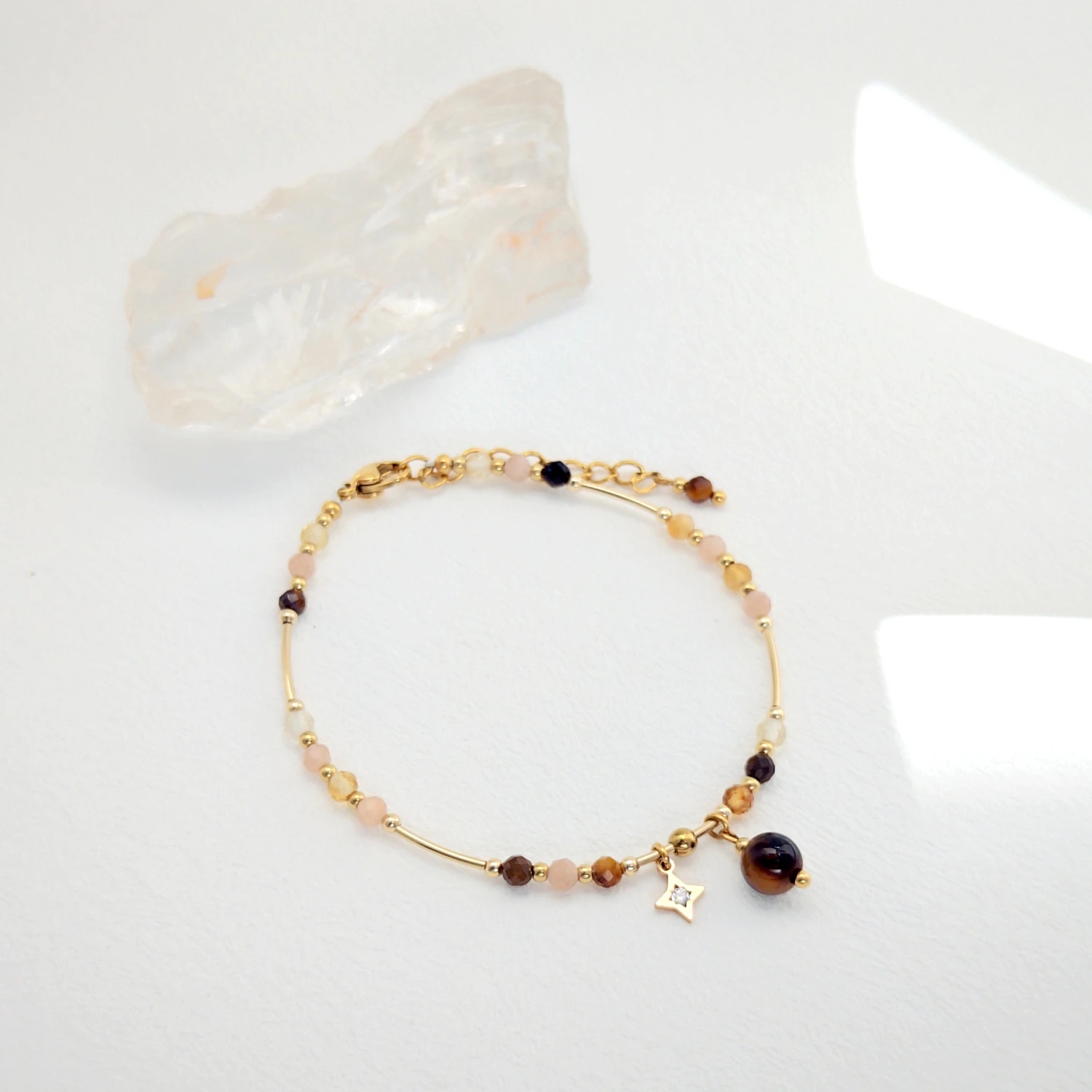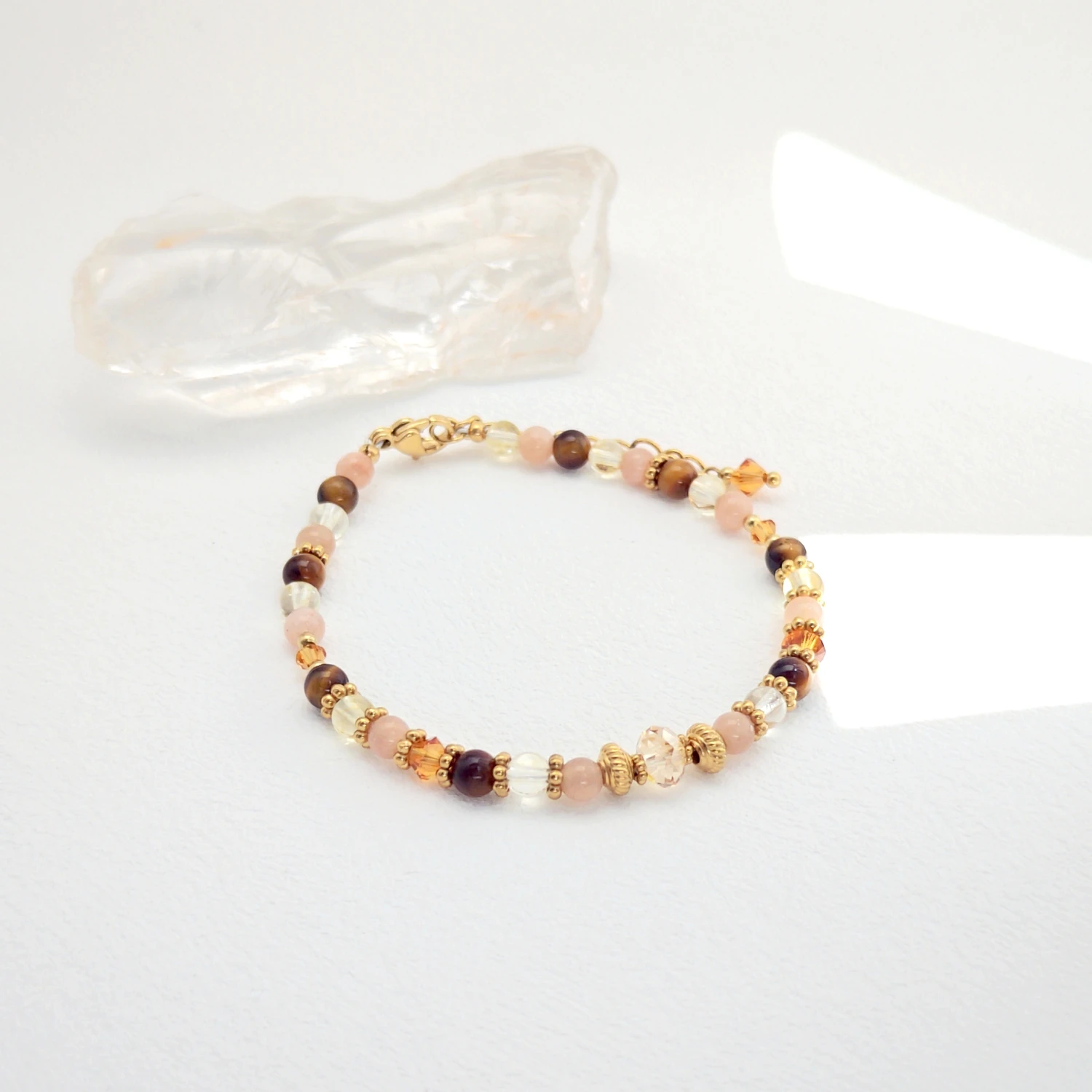 Lii Ji Natural Carnelian Pyrite Citrine Tiger's Eye 6mm/8mm With Crystal American 14K Gold Filled Elastic Bracelet