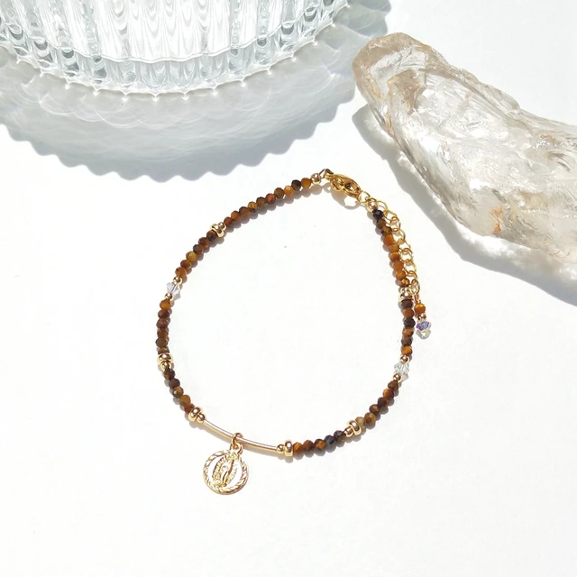Lii Ji Natural Hetian Jade Green Jade Citrine Tiger's Eye 4mm/6mm American 14K Gold Filled Charms Handmade Bracelet