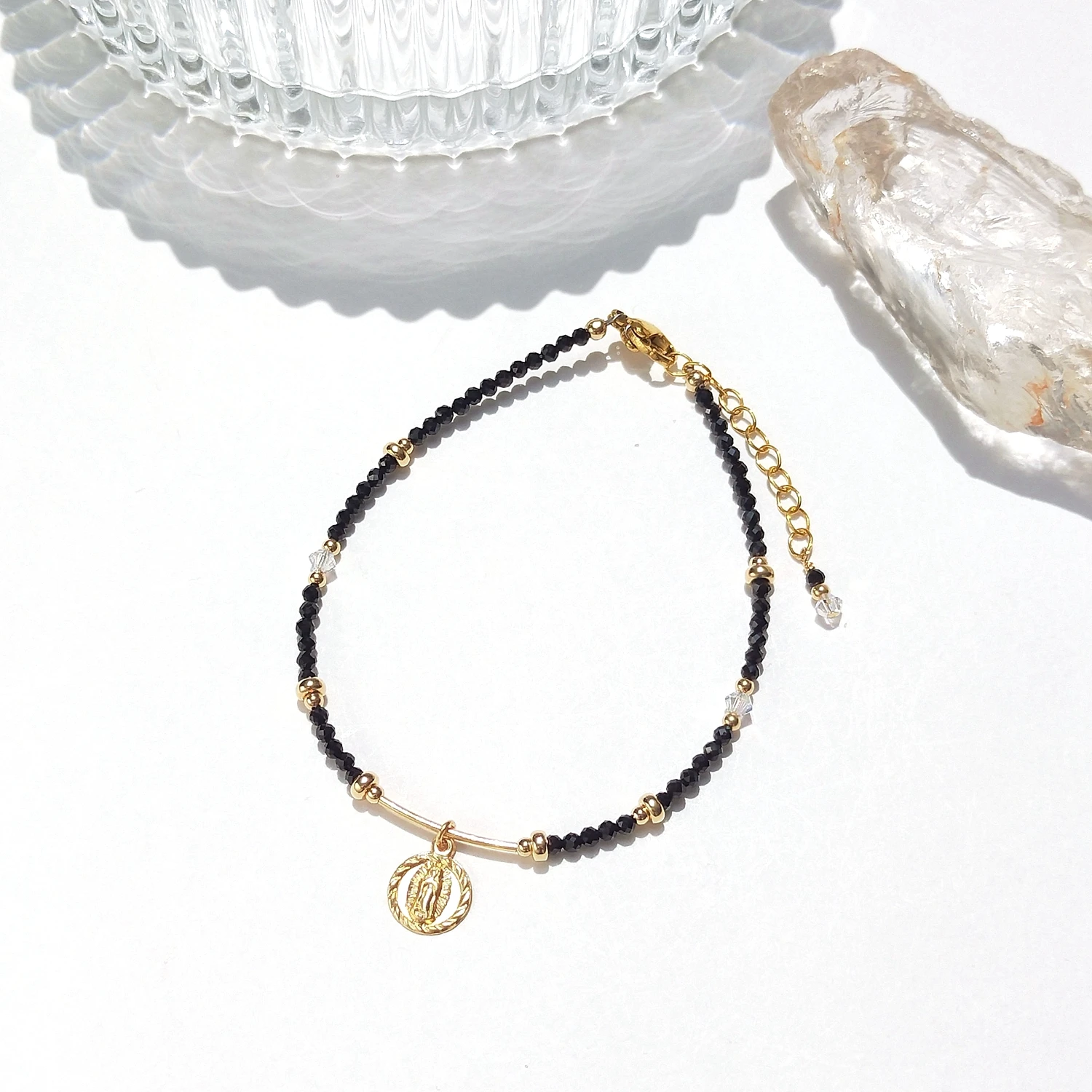 Lii Ji Natural Black Agate Clear Quartz Tiger's Eye 4mm 14K Gold Filled Stainless Steel Bracelet Handmade Fashion Jewelry