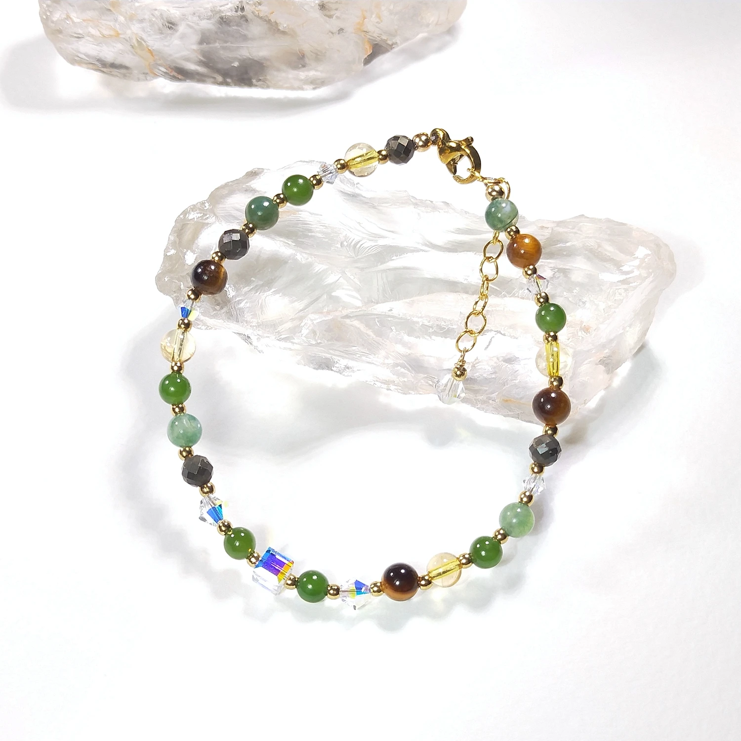 Lii Ji 8mm Amethyst Citrine Carnelian Malachite Black Tourmaline Tiger's Eye Emerald Aventurine 14K Gold Filled Bracelet