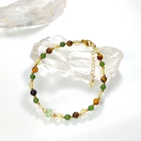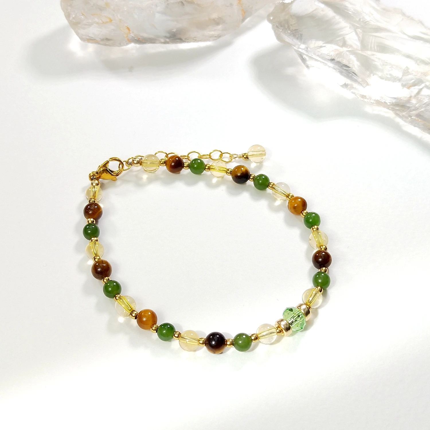 Lii Ji 8mm Amethyst Citrine Carnelian Malachite Black Tourmaline Tiger's Eye Emerald Aventurine 14K Gold Filled Bracelet