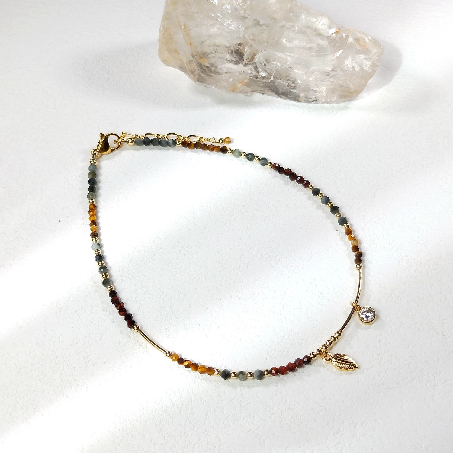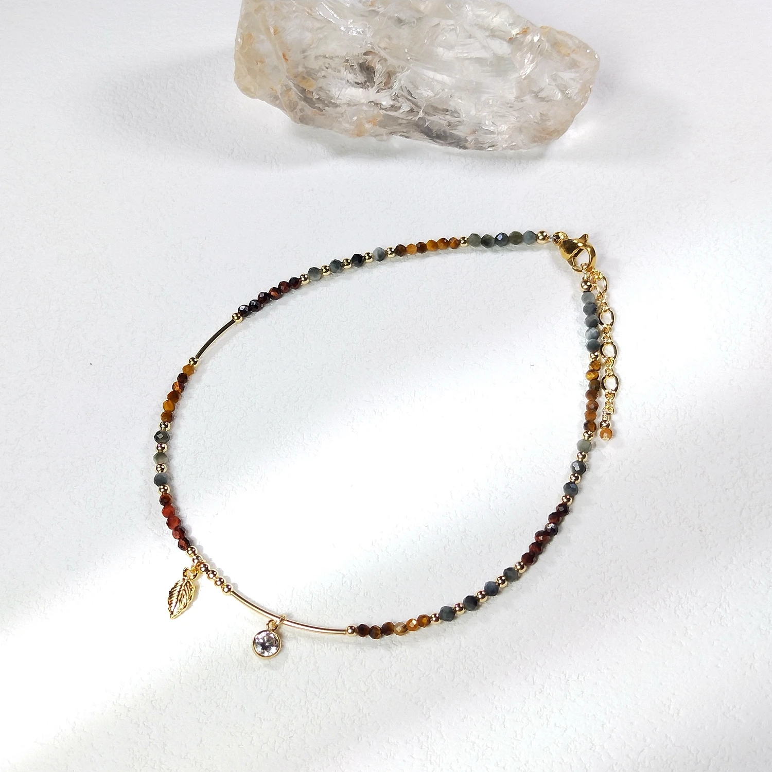Lii Ji Natural Hetian Jade Pyrite Moss Agate Tiger's Eye Citrine 4mm American 14K Gold Filled Handmade Bracelet