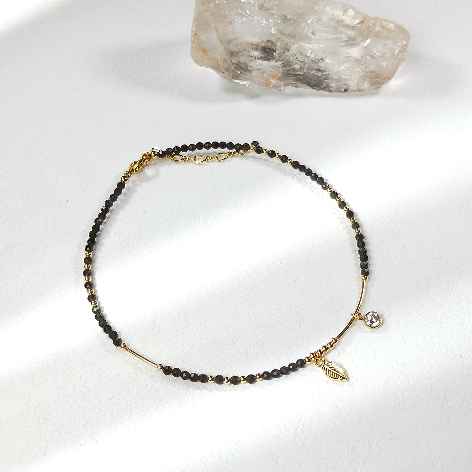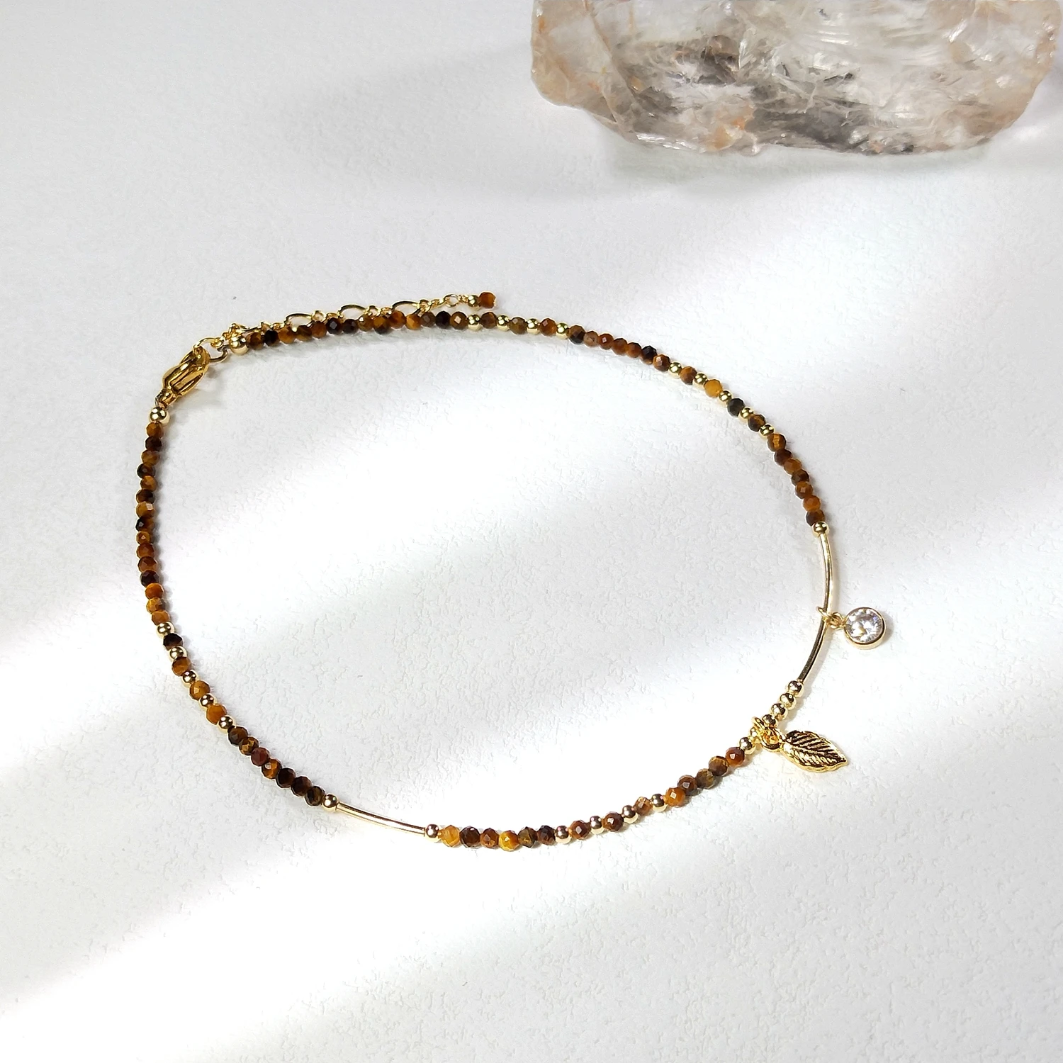 Lii Ji Natural Black Tourmaline TIger's Eye 6/8mm American 14K Gold Filled Bracelet Handmade Fashion Jewelry