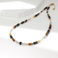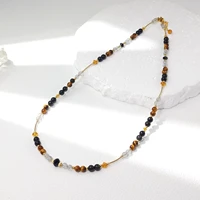 Lii Ji Green Jade Tiger's Eye Natural Stone 6mm/8mm 14K Gold Filled Necklace For Women Girls Gift 45+3cm