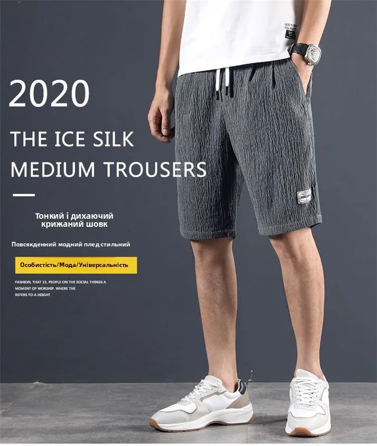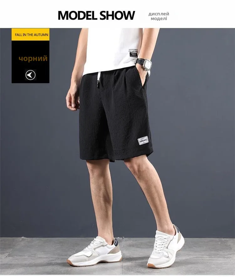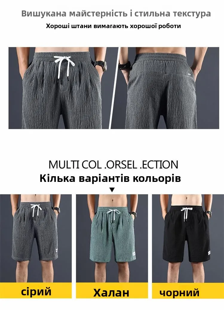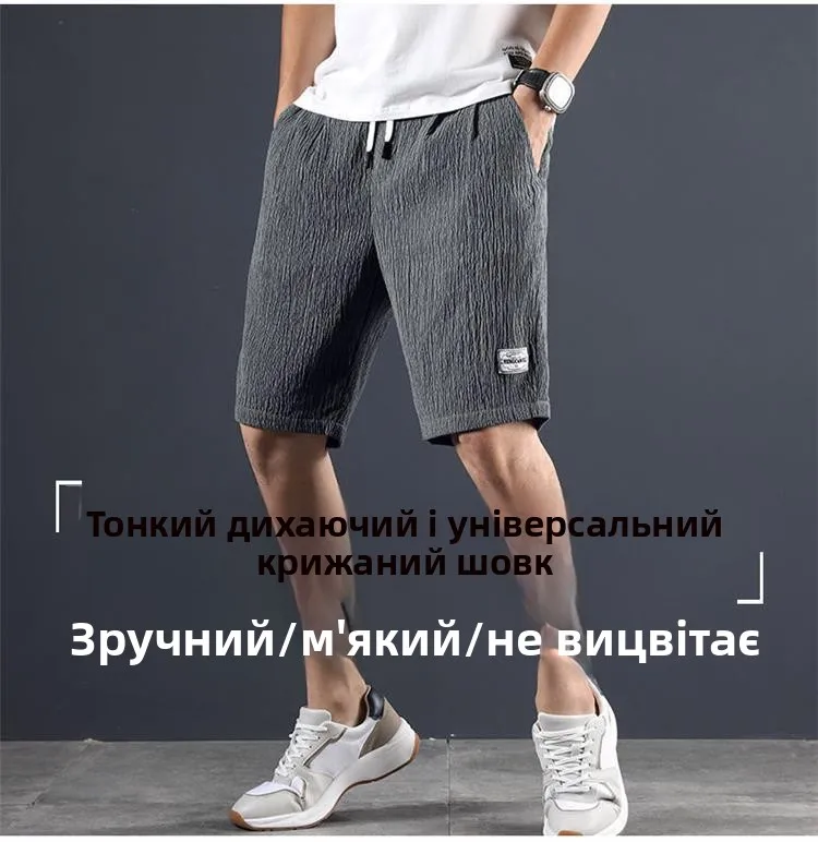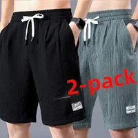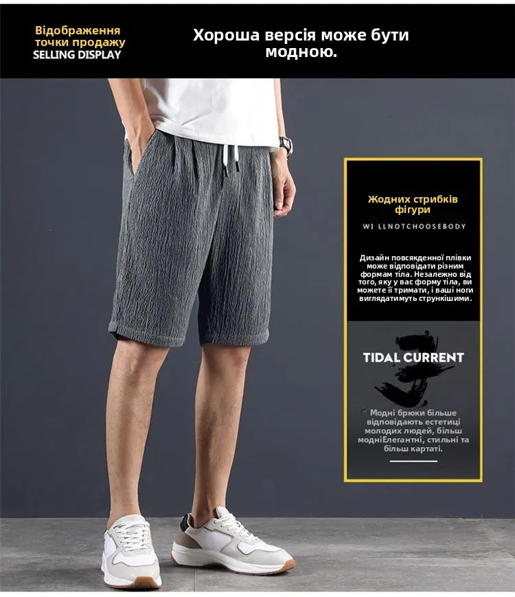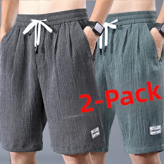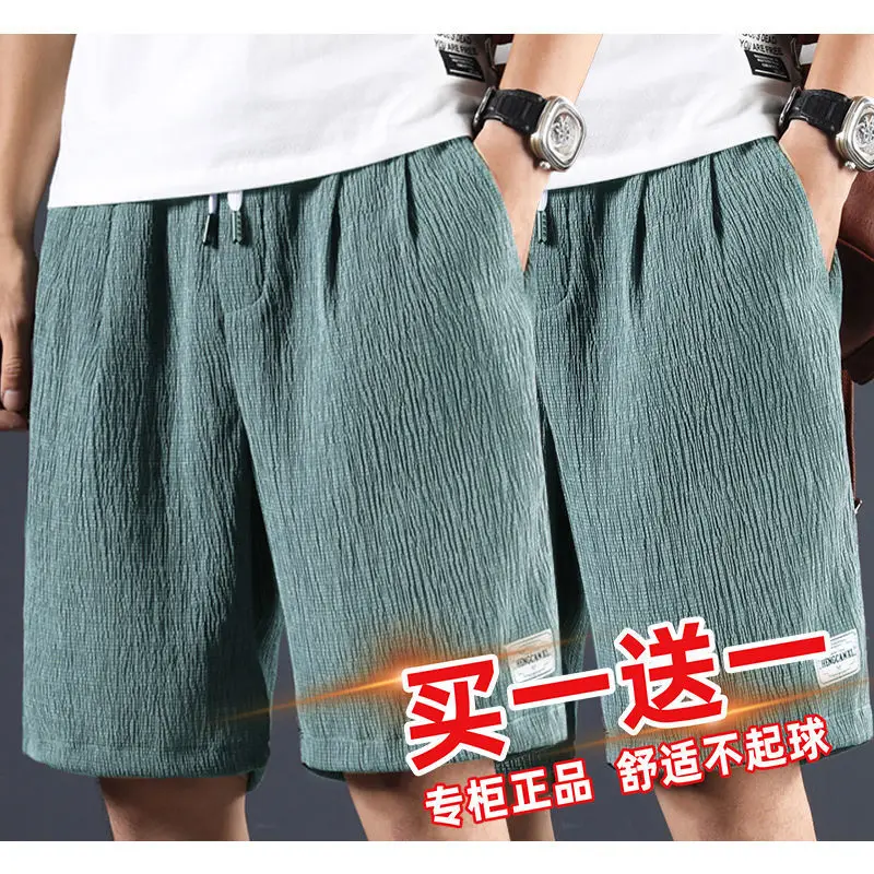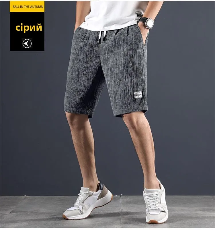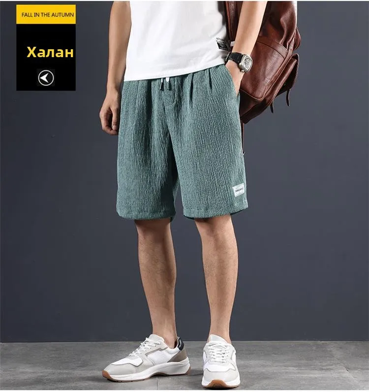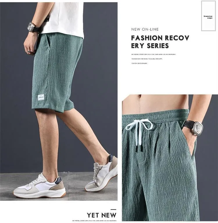 Linen Cotton Blend Men's Beach orts Summer Thin Breathable Wide Leg Pants Casual Loose Fit Five-Quarter Length Spor