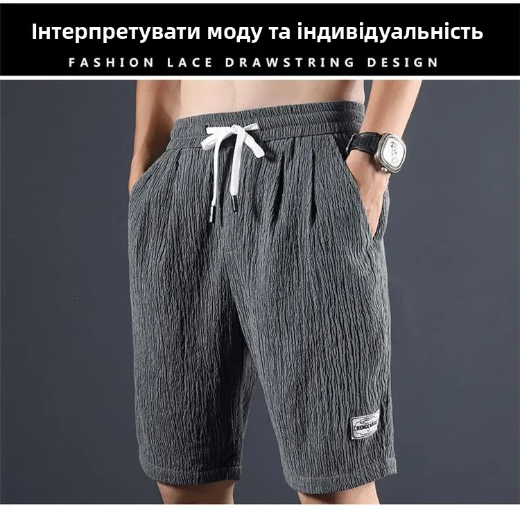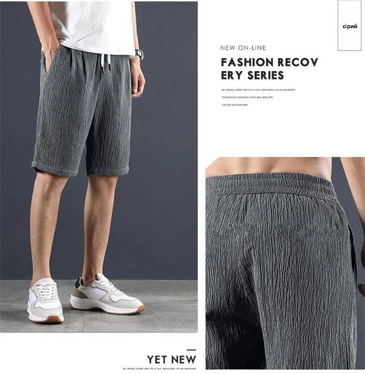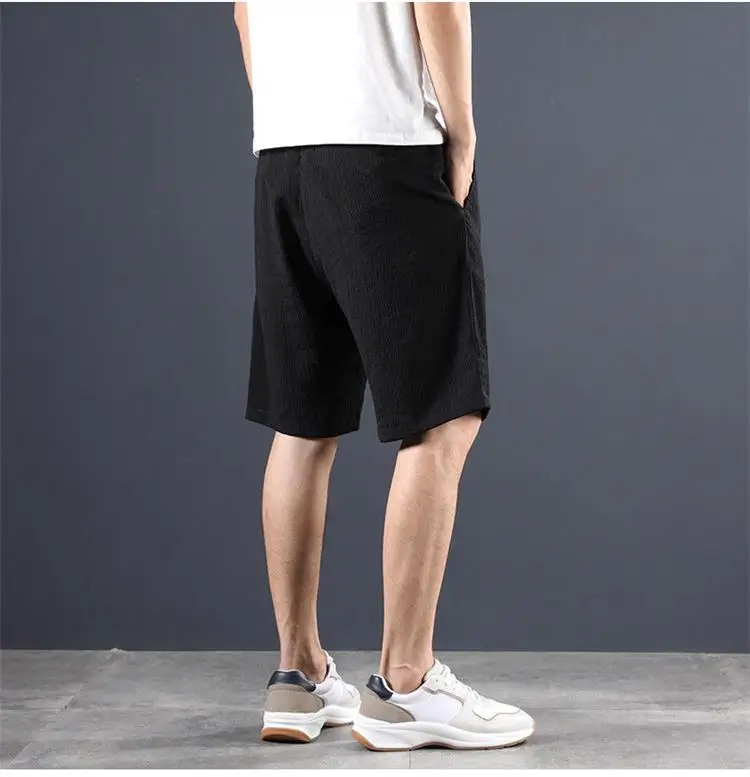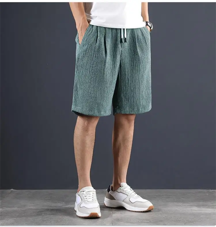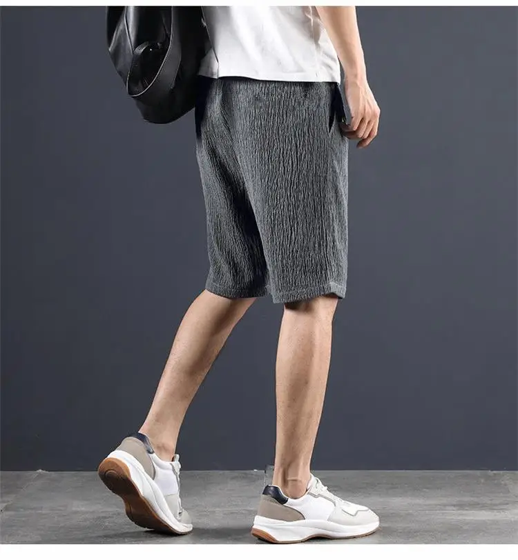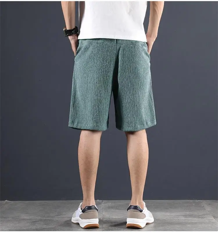 Linen Cotton Blend Men’s Beach orts Summer Thin Breathable Wide Leg Pants Casual Loose Fit Five-Quarter