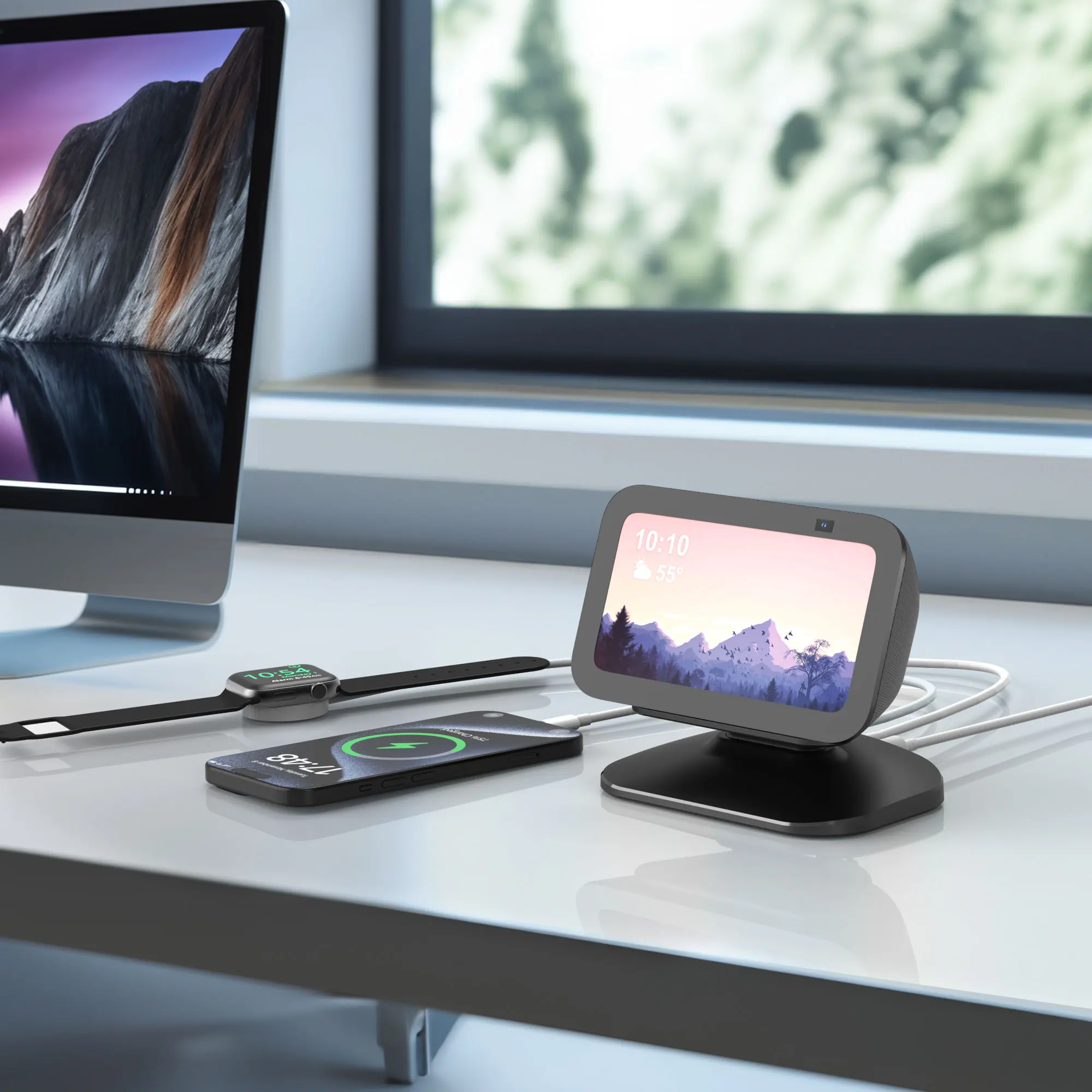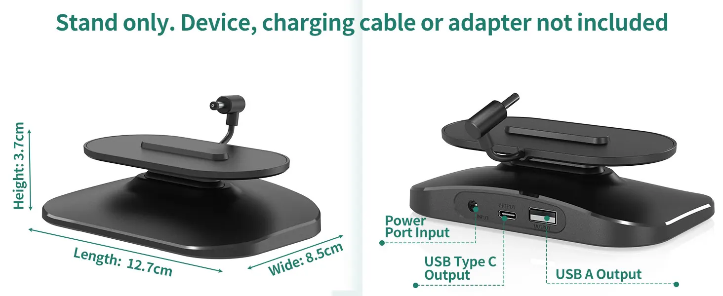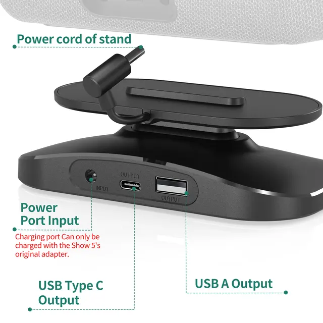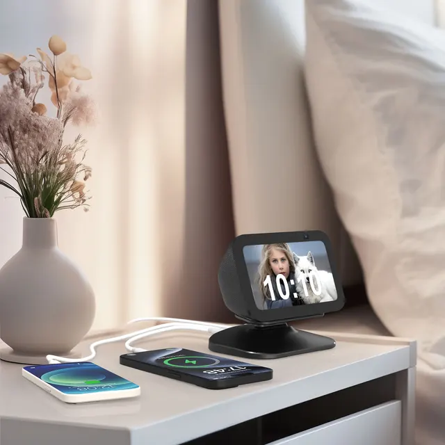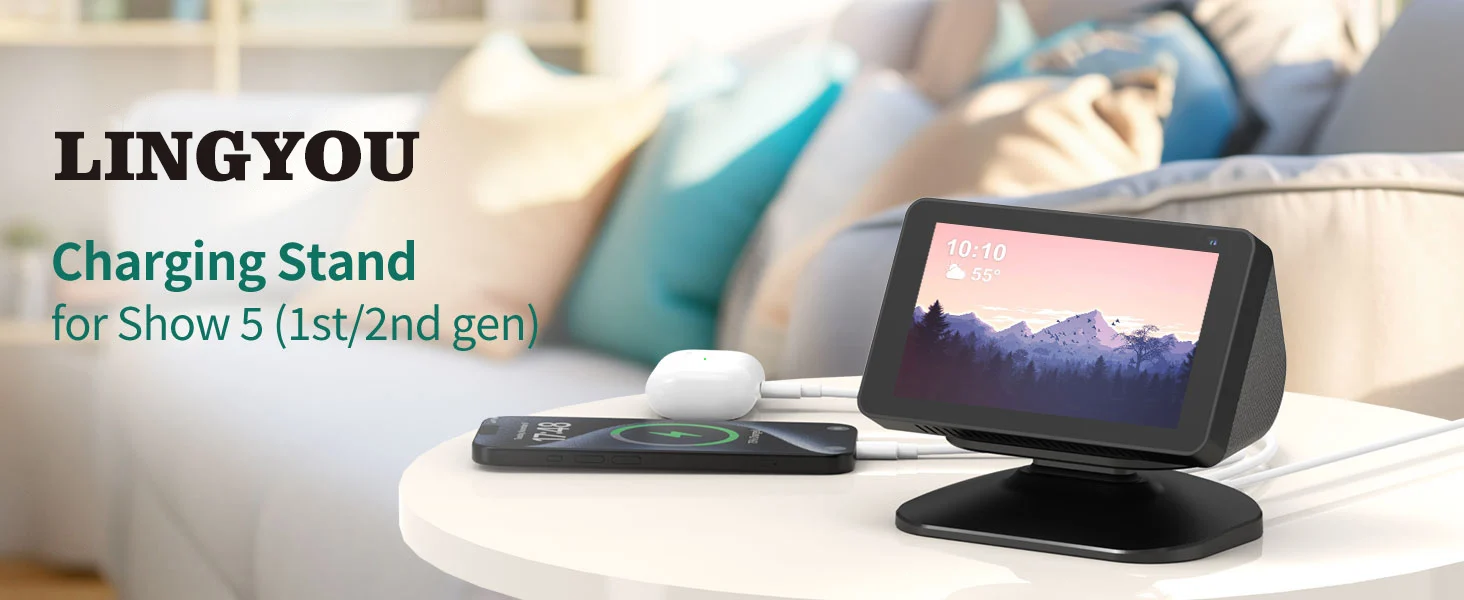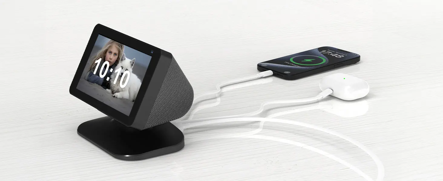 1. Adjustable stand: The adjustable charging stand is compatible with iphone and Samsung and Show 5 (1st and 2nd generation). Not compatible with the Show 5 (3rd generation, version 2023) 【Note: Only a desktop charging stand, no built-in battery, power supply only via the power adapter, no device included】.