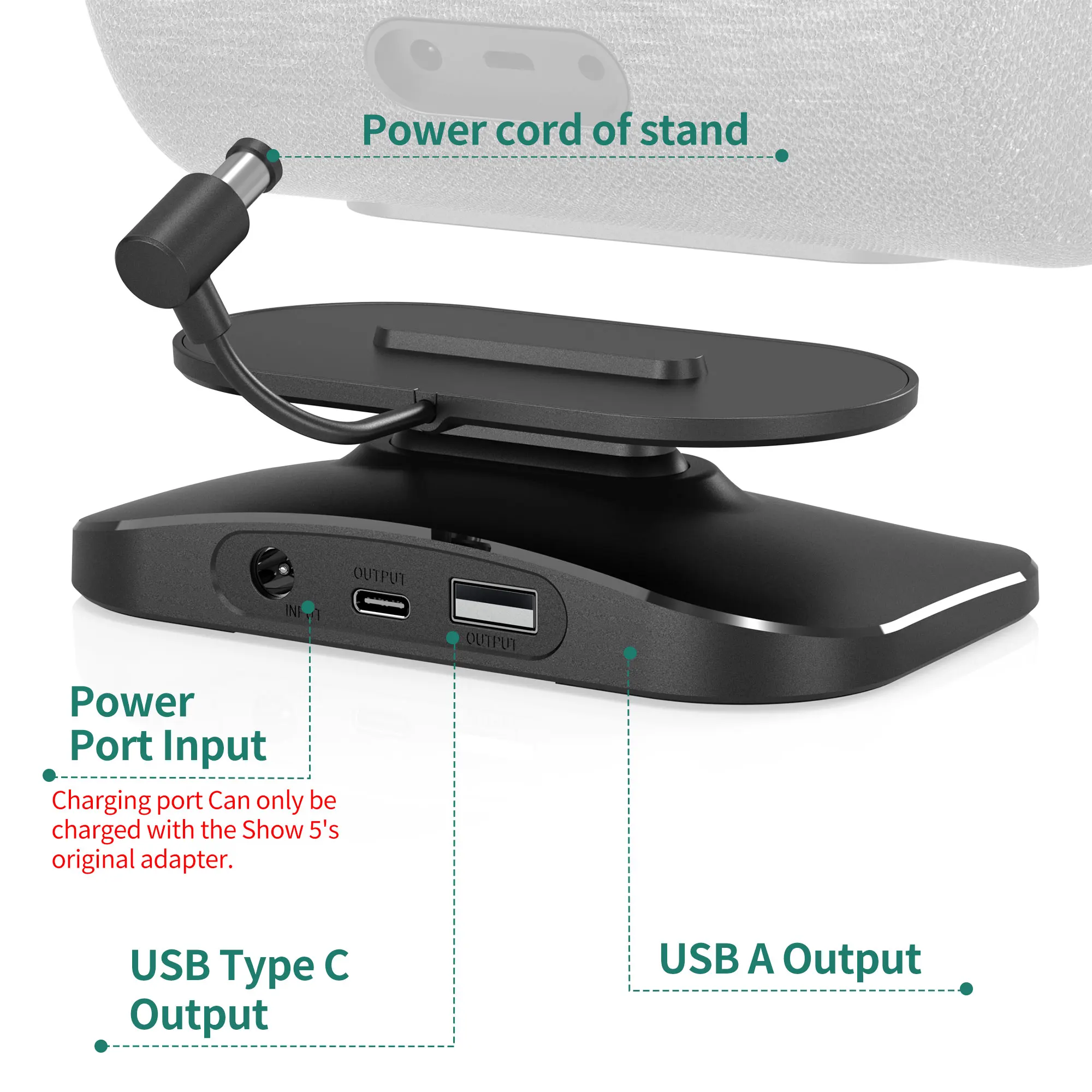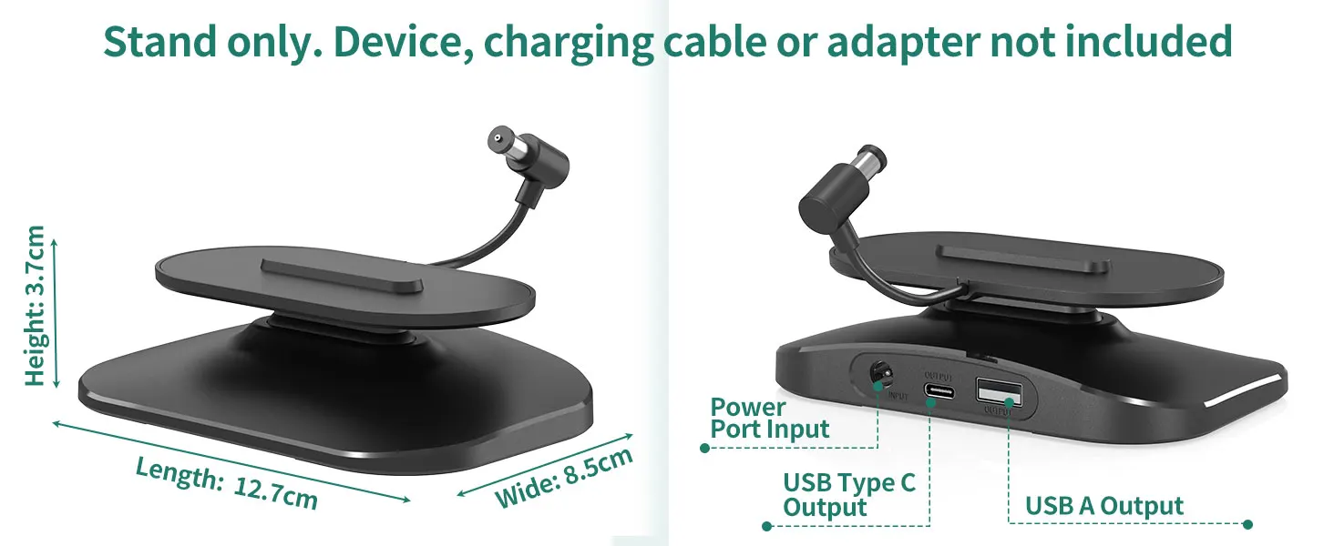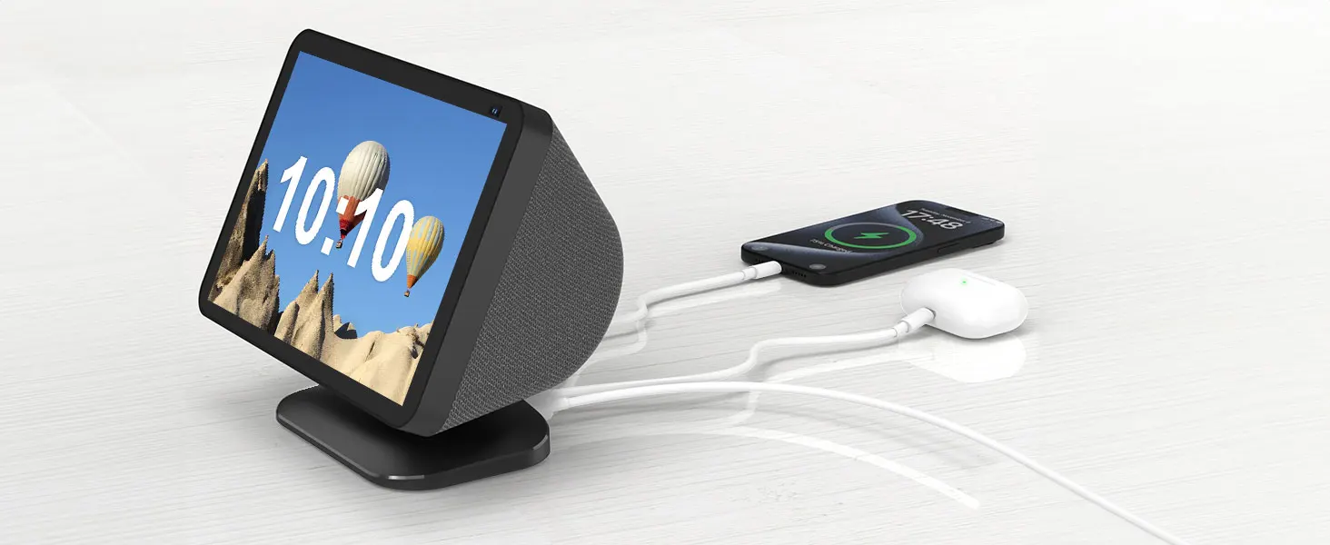 1. Adjustable stand: The adjustable charging stand is compatible with iphone and Samsung and Show 8 (1st and 2nd generation). Not compatible with the Show 8 (3rd generation, version 2023) 【Note: Only a desktop charging stand, no built-in battery, power supply only via the power adapter, no device included】.