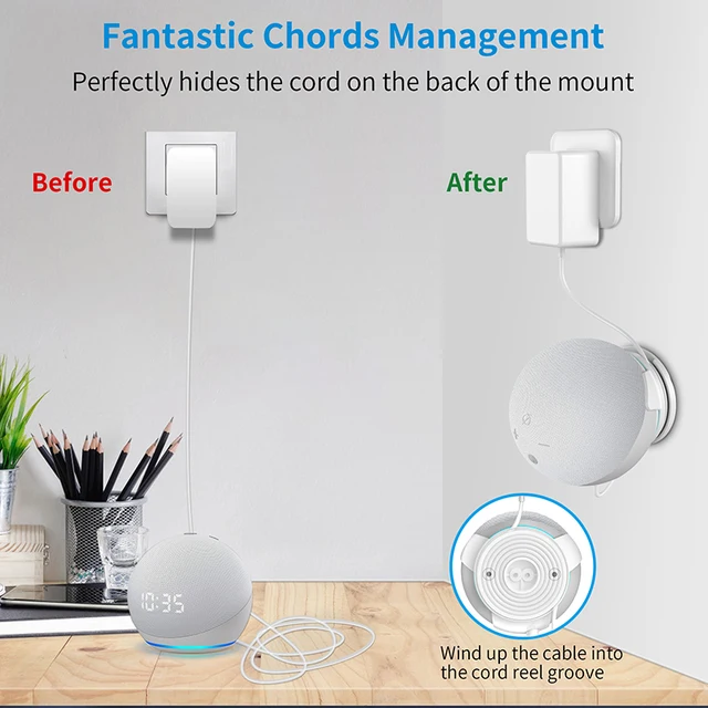 LINGYOU Household Outlet Wall Mount Stand Hanger With Cable Winder For Amazon Echo Dot 3rd Gen Plug In Kitchen Bathroom Bedroom